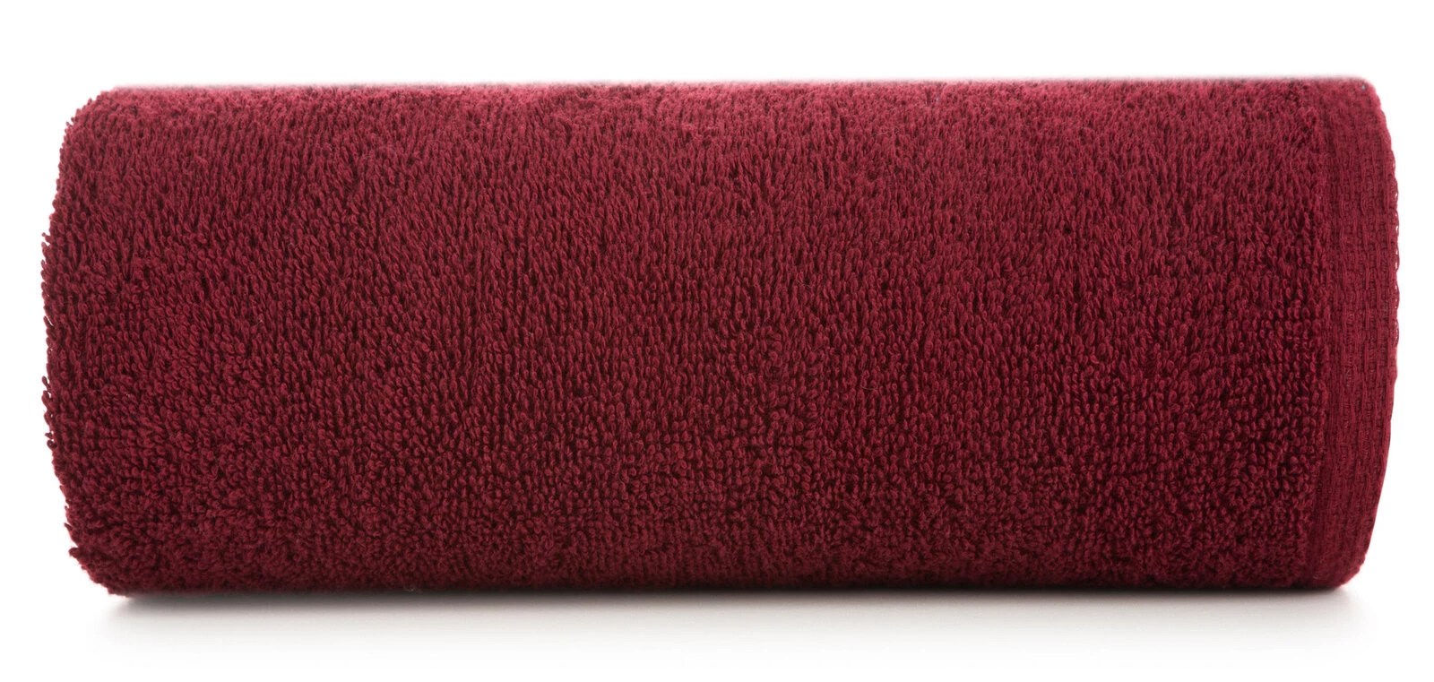 Jednokolorowy, gładki ręcznik kąpielowy z miękkiej tkaniny bawełnianej o splocie frotte. Lekki, trwały i bardzo chłonny. Kolory odporne na częste pranie. szerokość: 50 cm, długość: 90 cm, kolor: bordowy, Gramatura: 400 GSM, Skład: 100% bawełna