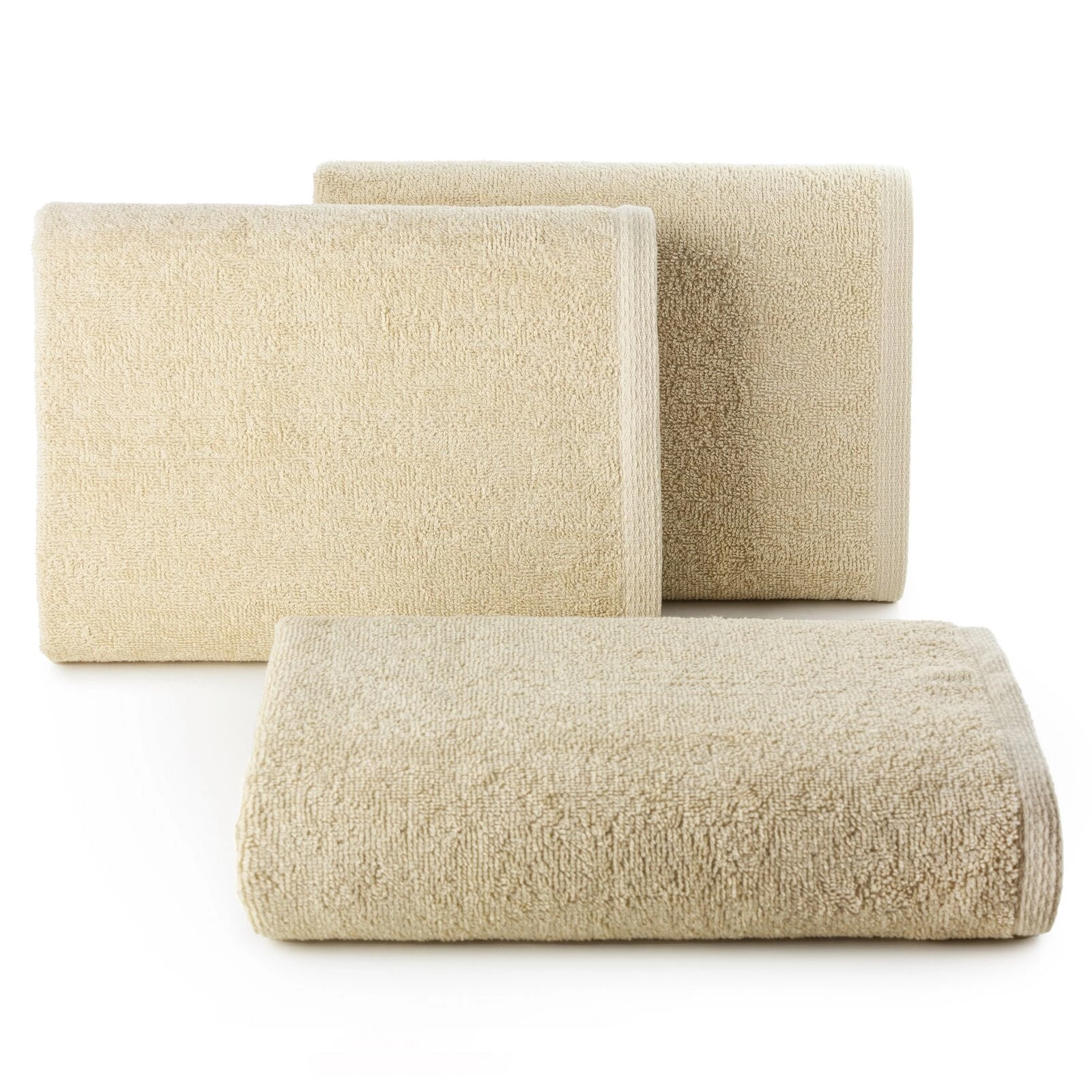 Jednokolorowy, gładki ręcznik kąpielowy z miękkiej tkaniny bawełnianej o splocie frotte. Lekki, trwały i bardzo chłonny. Kolory odporne na częste pranie. szerokość: 70 cm, długość: 140 cm, kolor: beżowy, Gramatura: 400 GSM, Skład: 100% bawełna