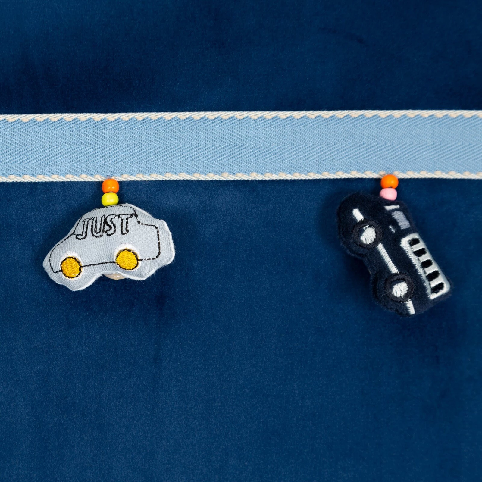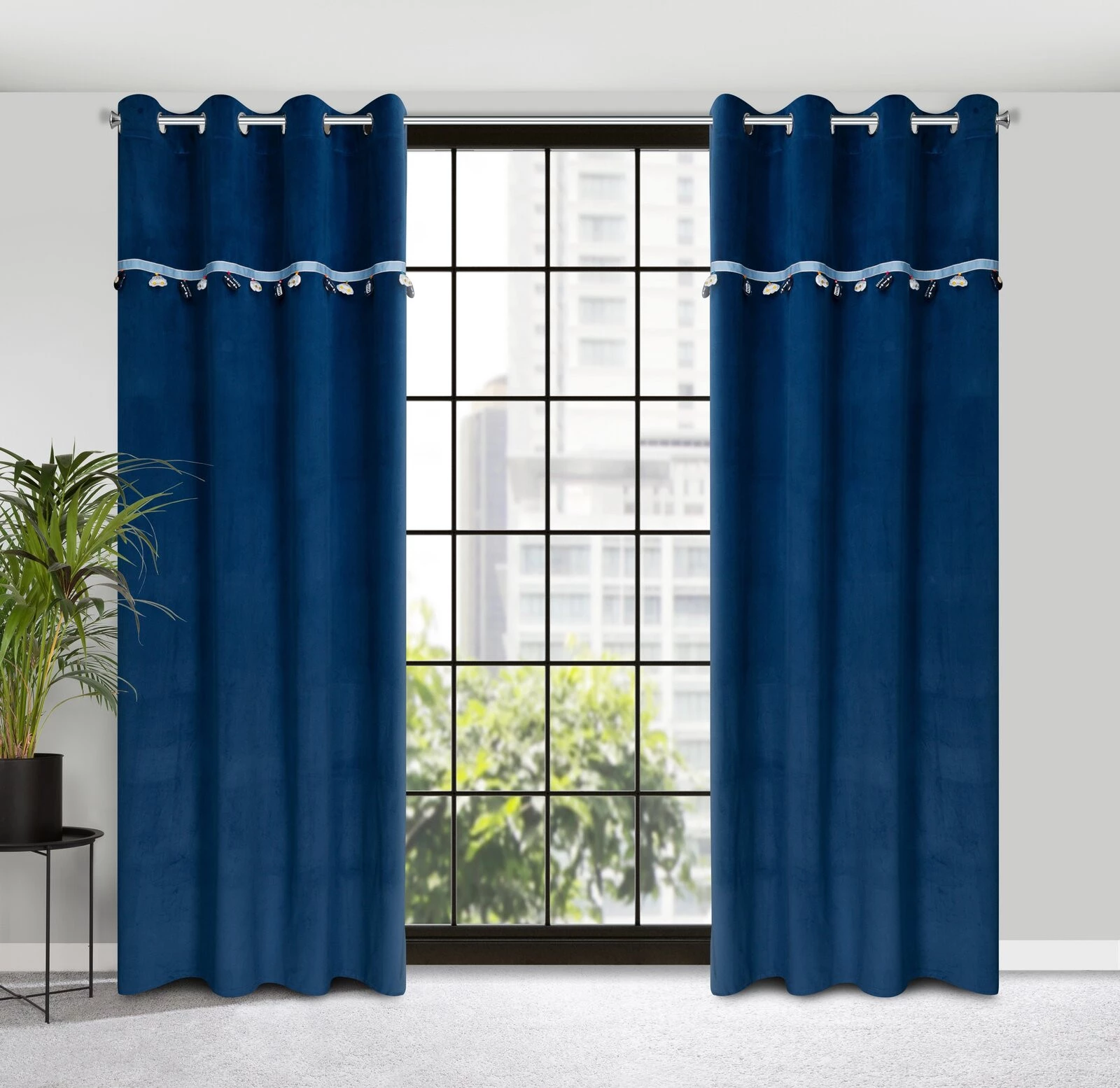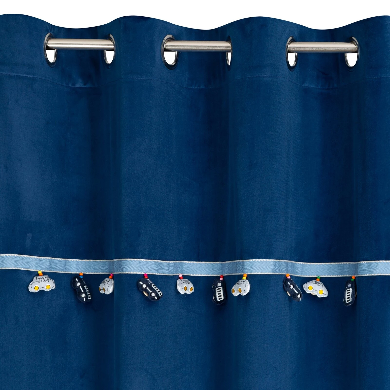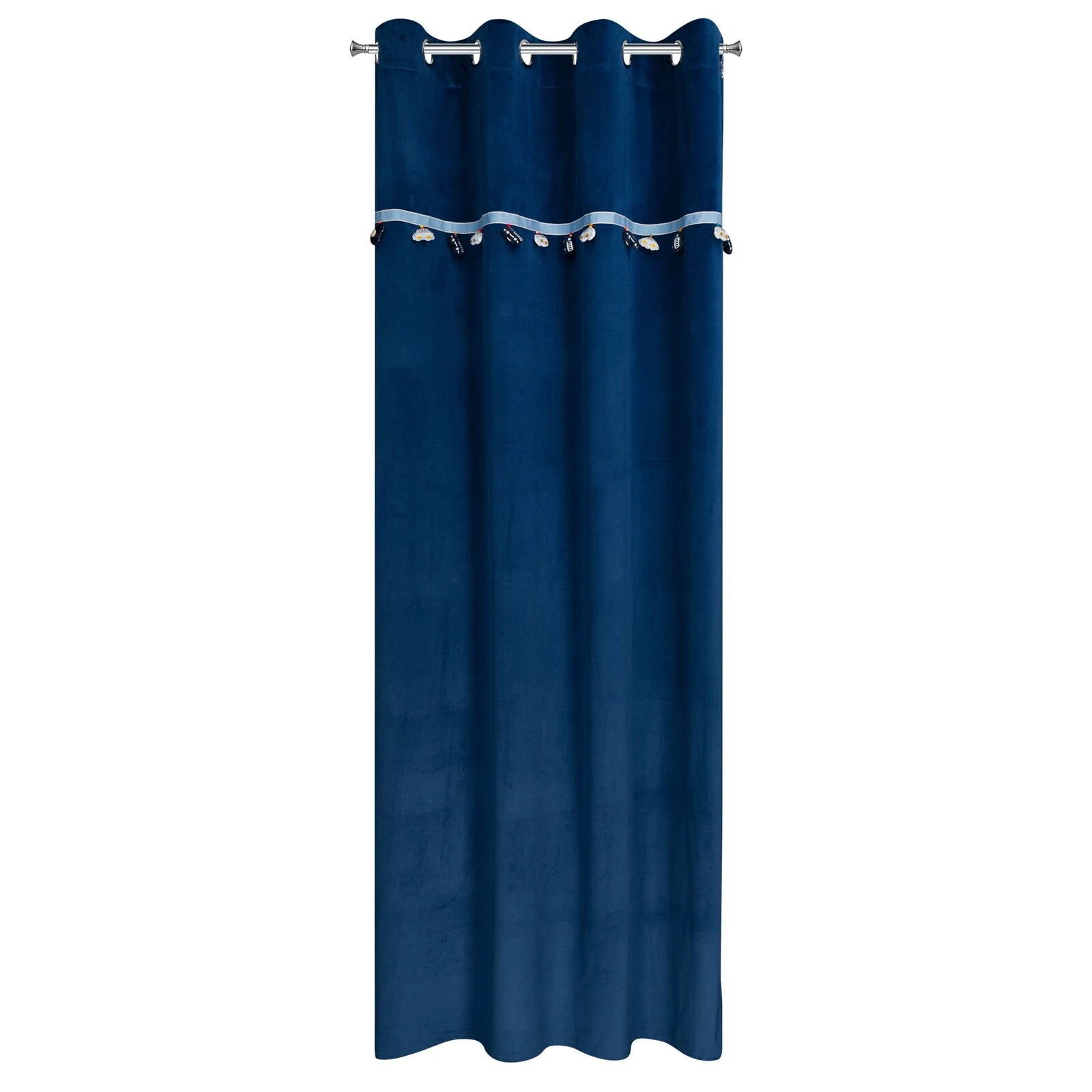 - Zasłona gotowa z wszytą taśmą dekoracyjną z motywem dziecięcym szerokość: 140 cm, długość: 250 cm, kolor: granatowy, Gramatura: 200 GSM, Skład: 100% poliester