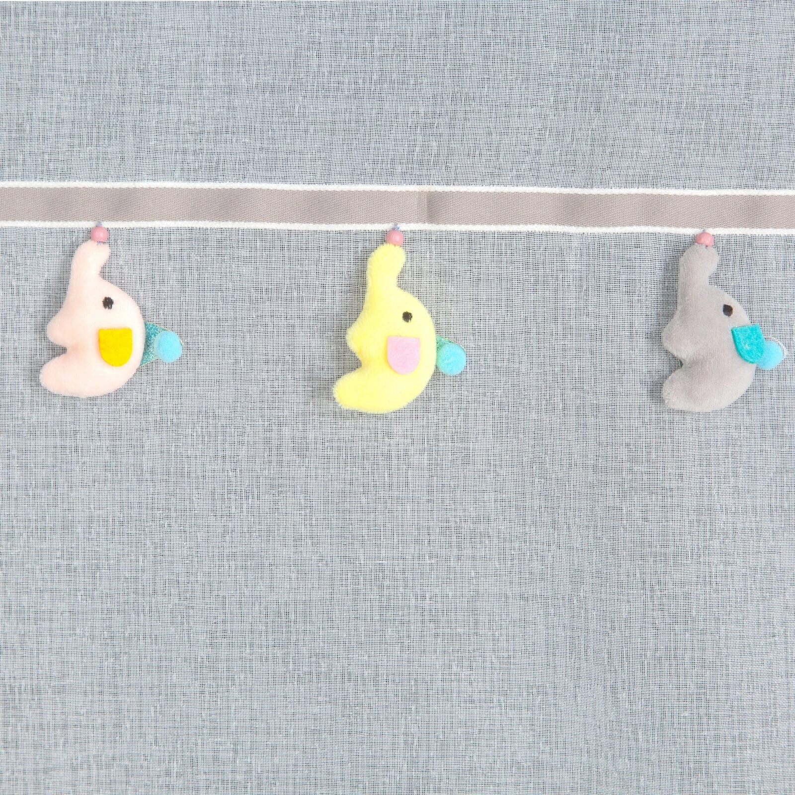 Firana gotowa z wszytą taśmą dekoracyjną z motywem dziecięcym szerokość: 140 cm, długość: 250 cm, kolor: biały, Gramatura: 50 GSM, Skład: 100% poliester