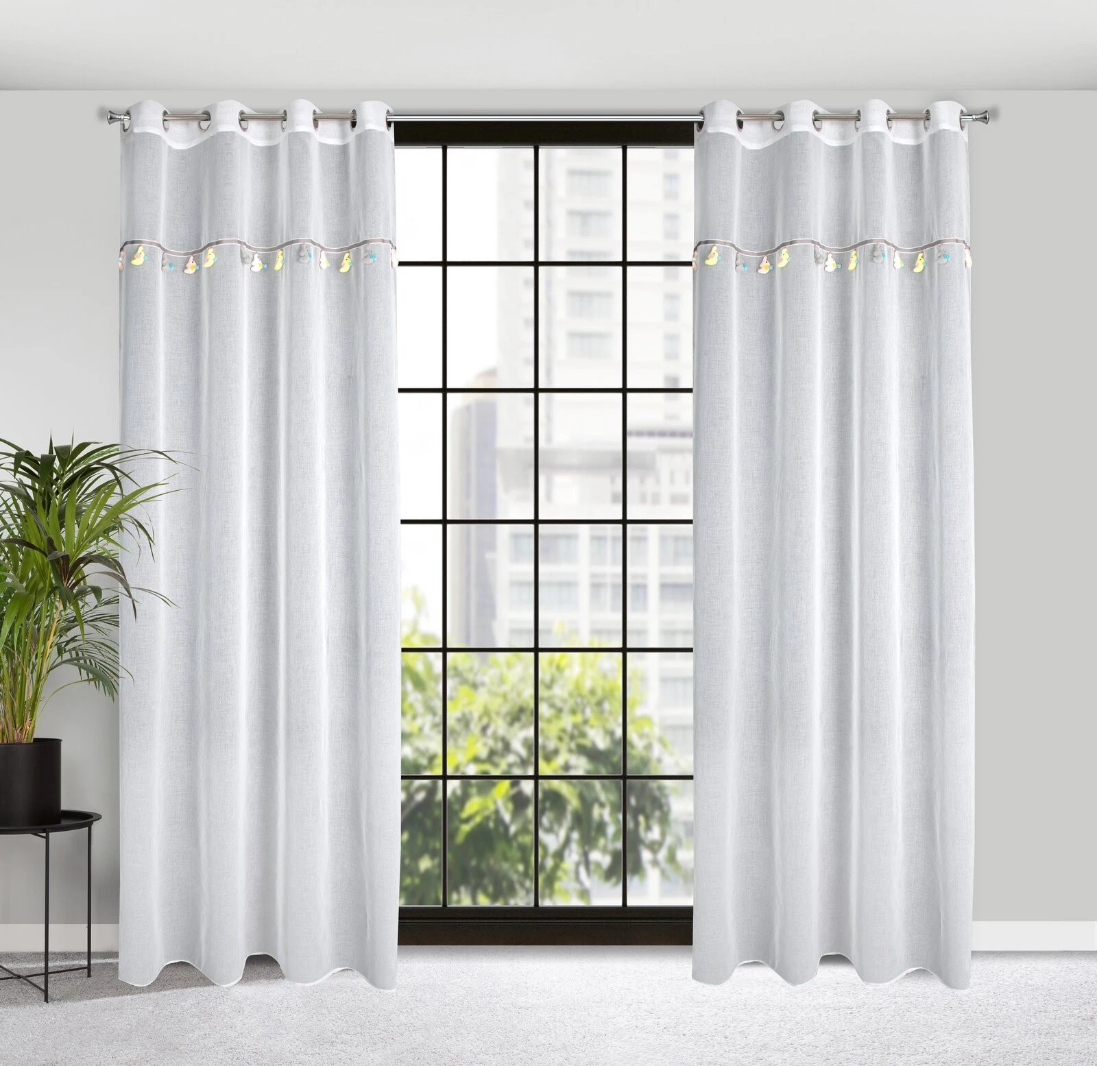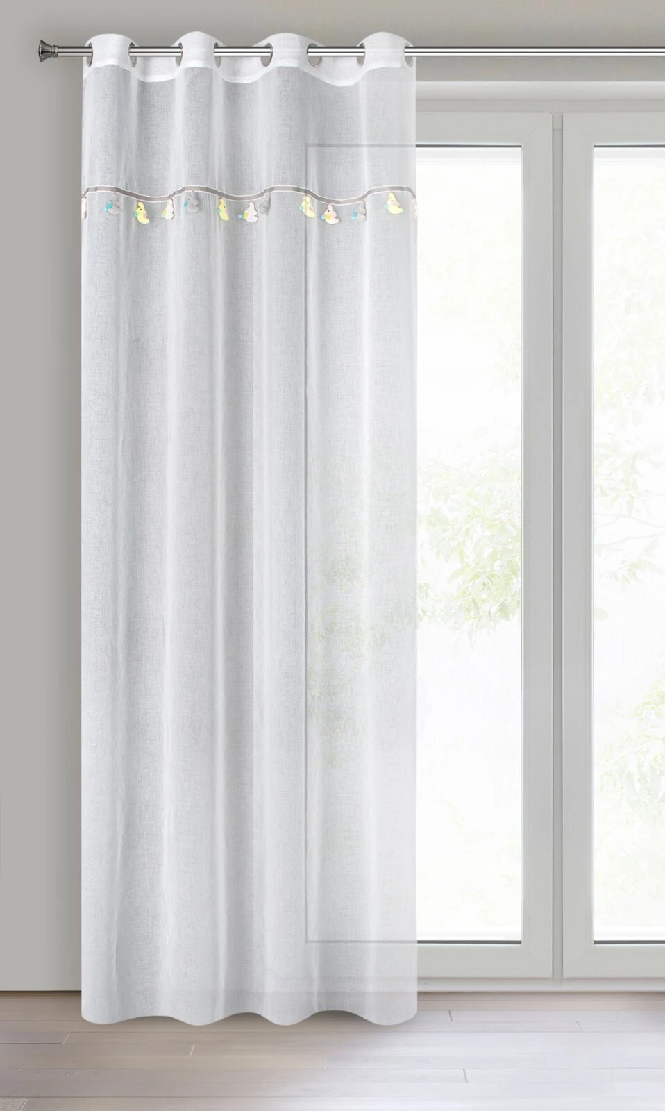 - Firana gotowa z wszytą taśmą dekoracyjną z motywem dziecięcym szerokość: 140 cm, długość: 250 cm, kolor: biały, Gramatura: 50 GSM, Skład: 100% poliester