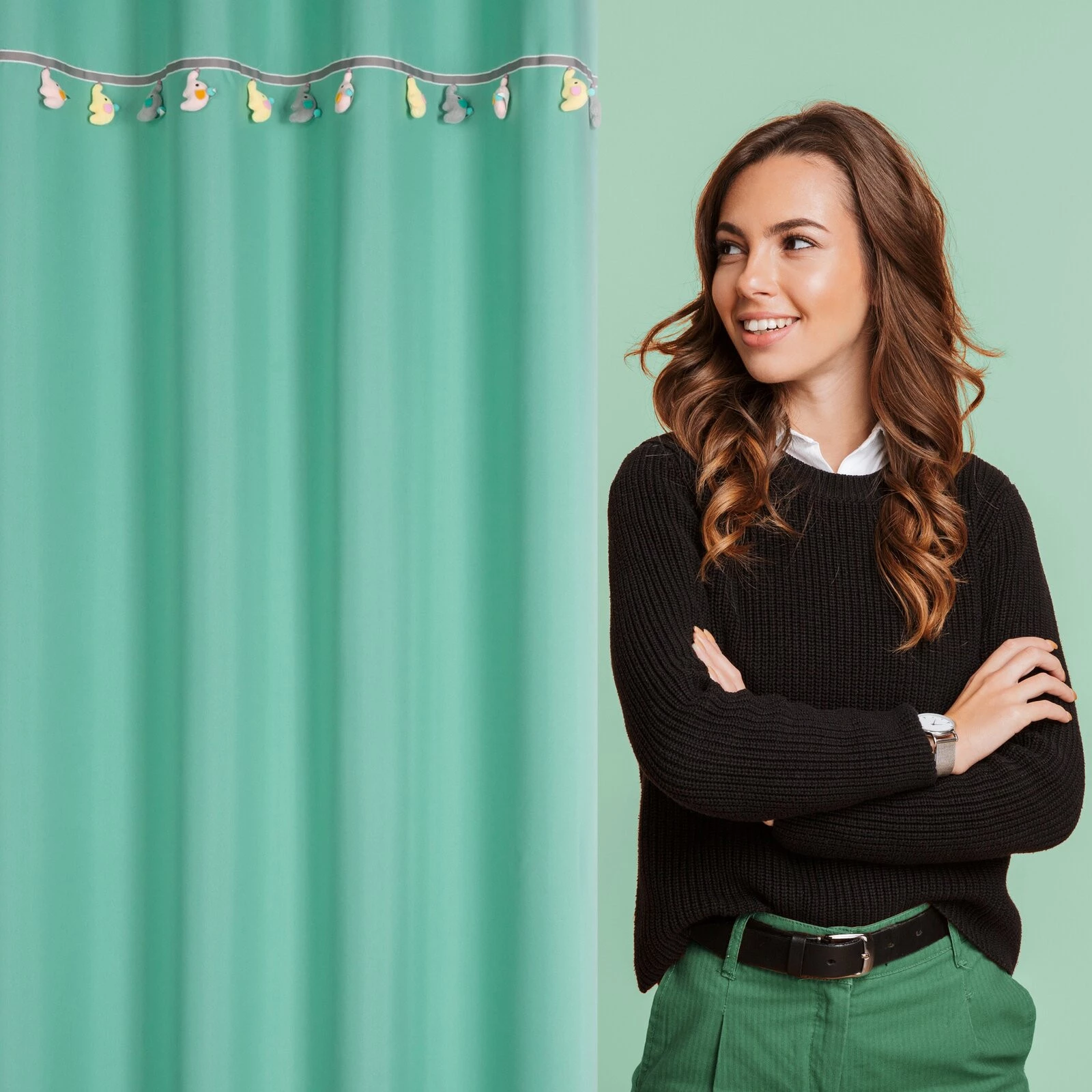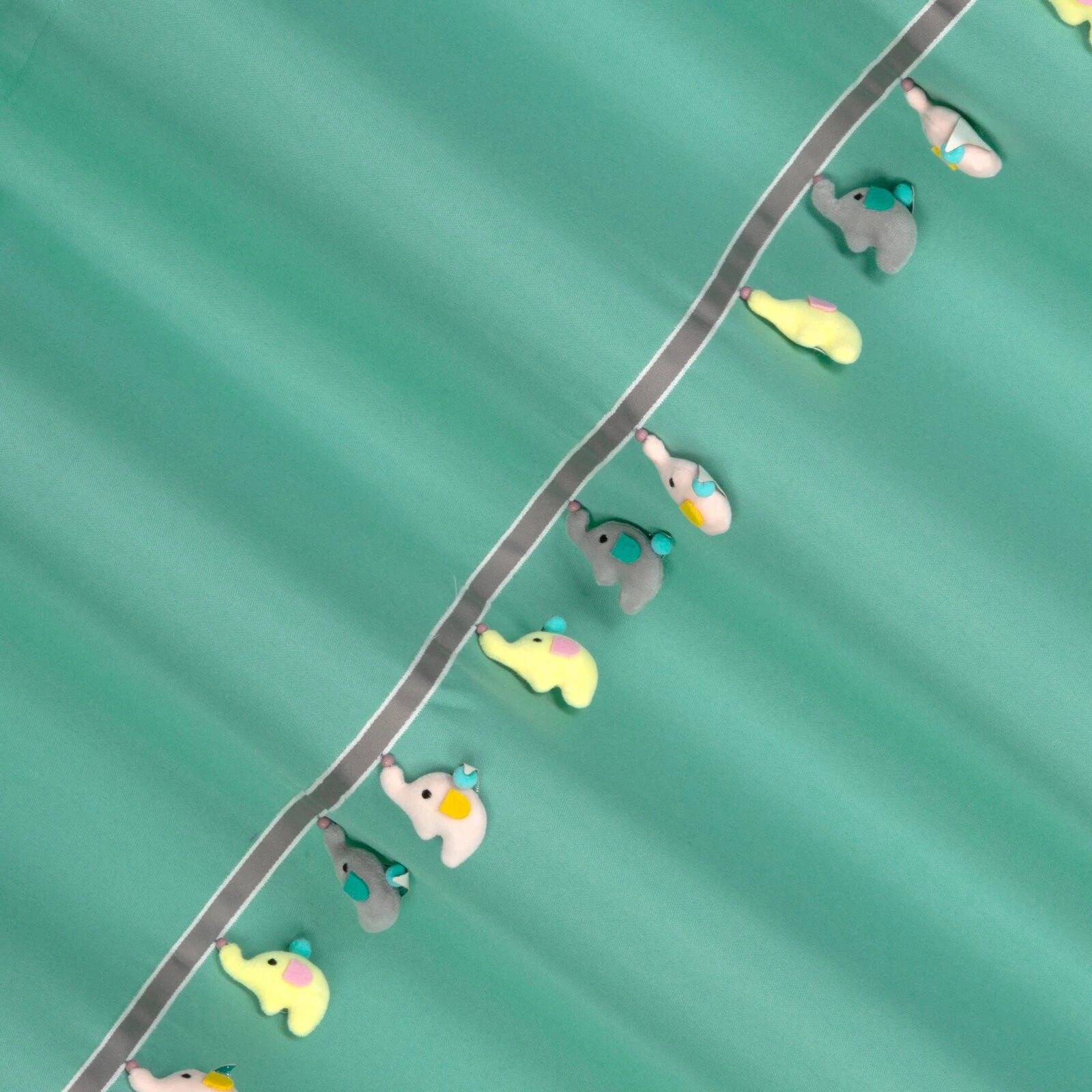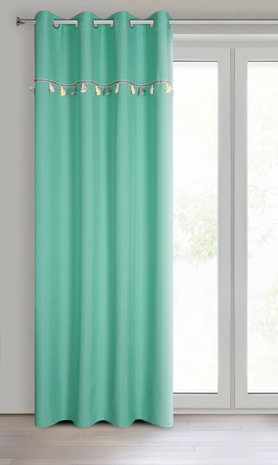 - Zasłona gotowa z wszytą taśmą dekoracyjną z motywem dziecięcym szerokość: 140 cm, długość: 250 cm, kolor: miętowy, Gramatura: 140 GSM, Skład: 100% poliester