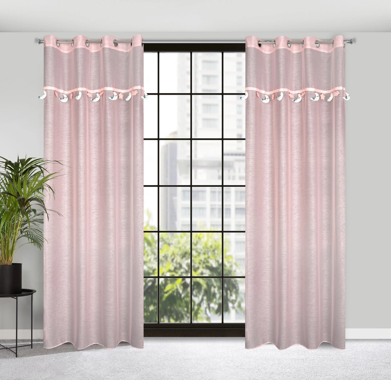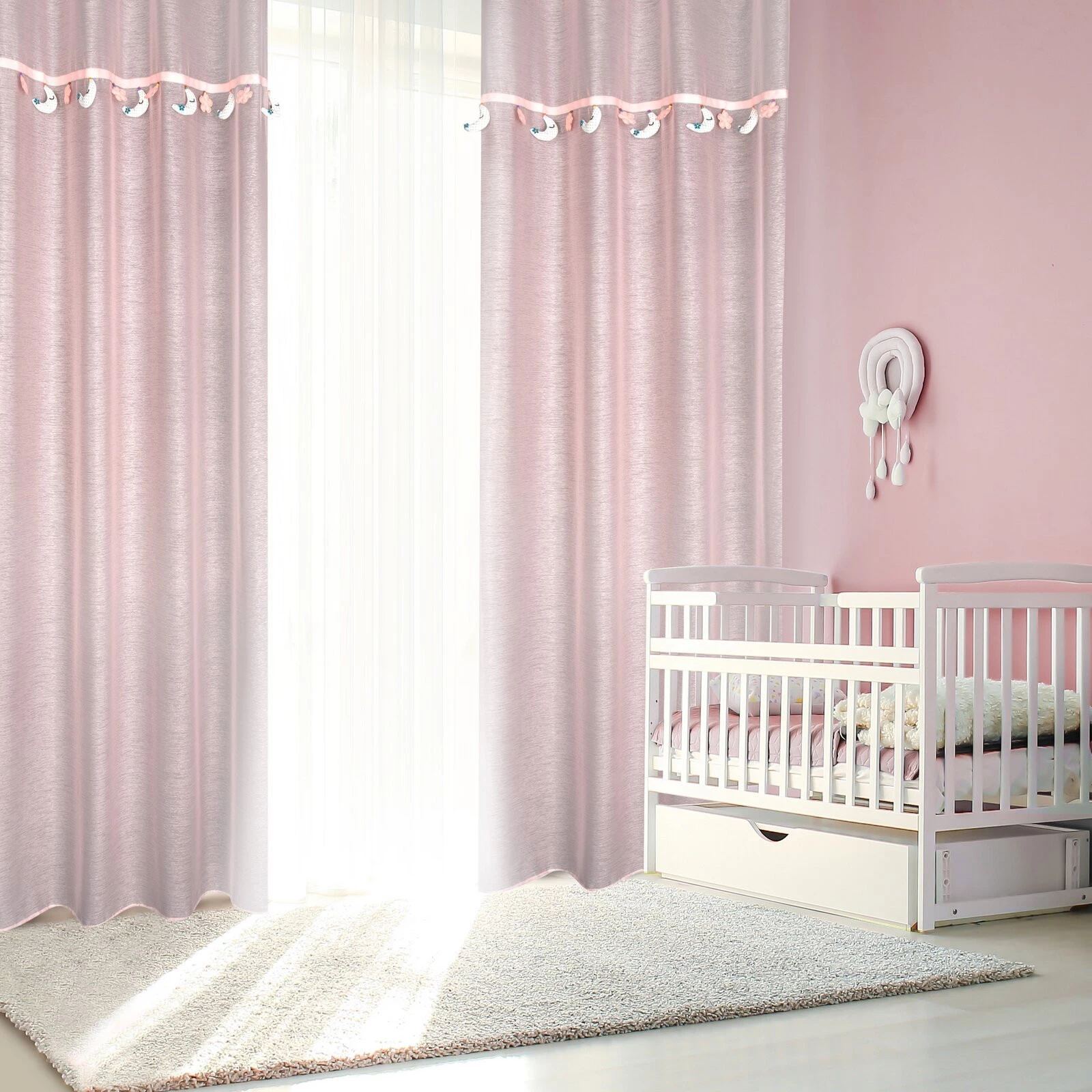 - Firana gotowa z wszytą taśmą dekoracyjną z motywem dziecięcym szerokość: 140 cm, długość: 250 cm, kolor: różowy, Gramatura: 50 GSM, Skład: 100% poliester