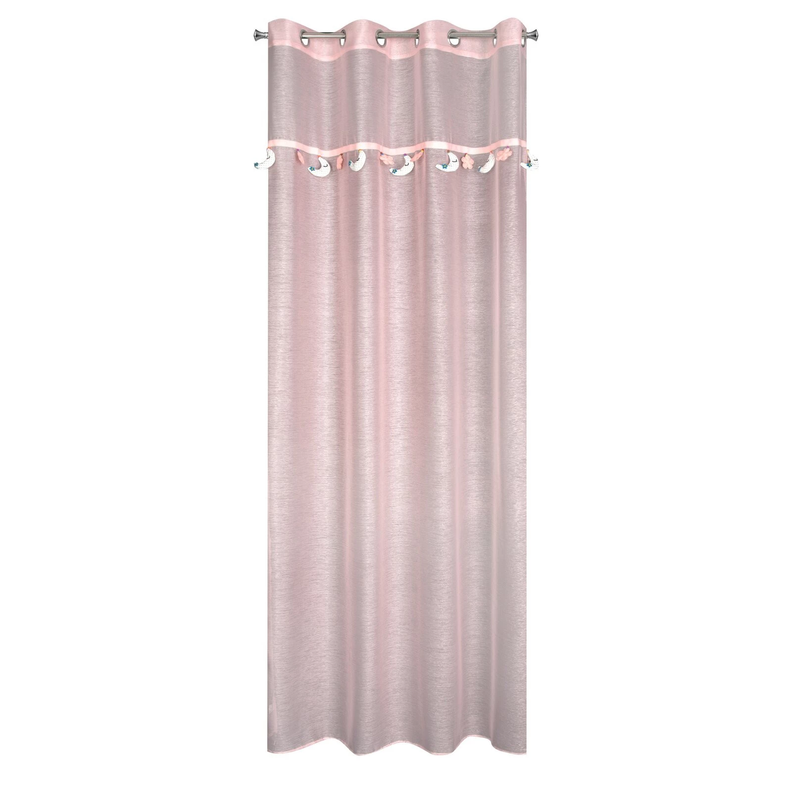 Firana gotowa z wszytą taśmą dekoracyjną z motywem dziecięcym szerokość: 140 cm, długość: 250 cm, kolor: różowy, Gramatura: 50 GSM, Skład: 100% poliester