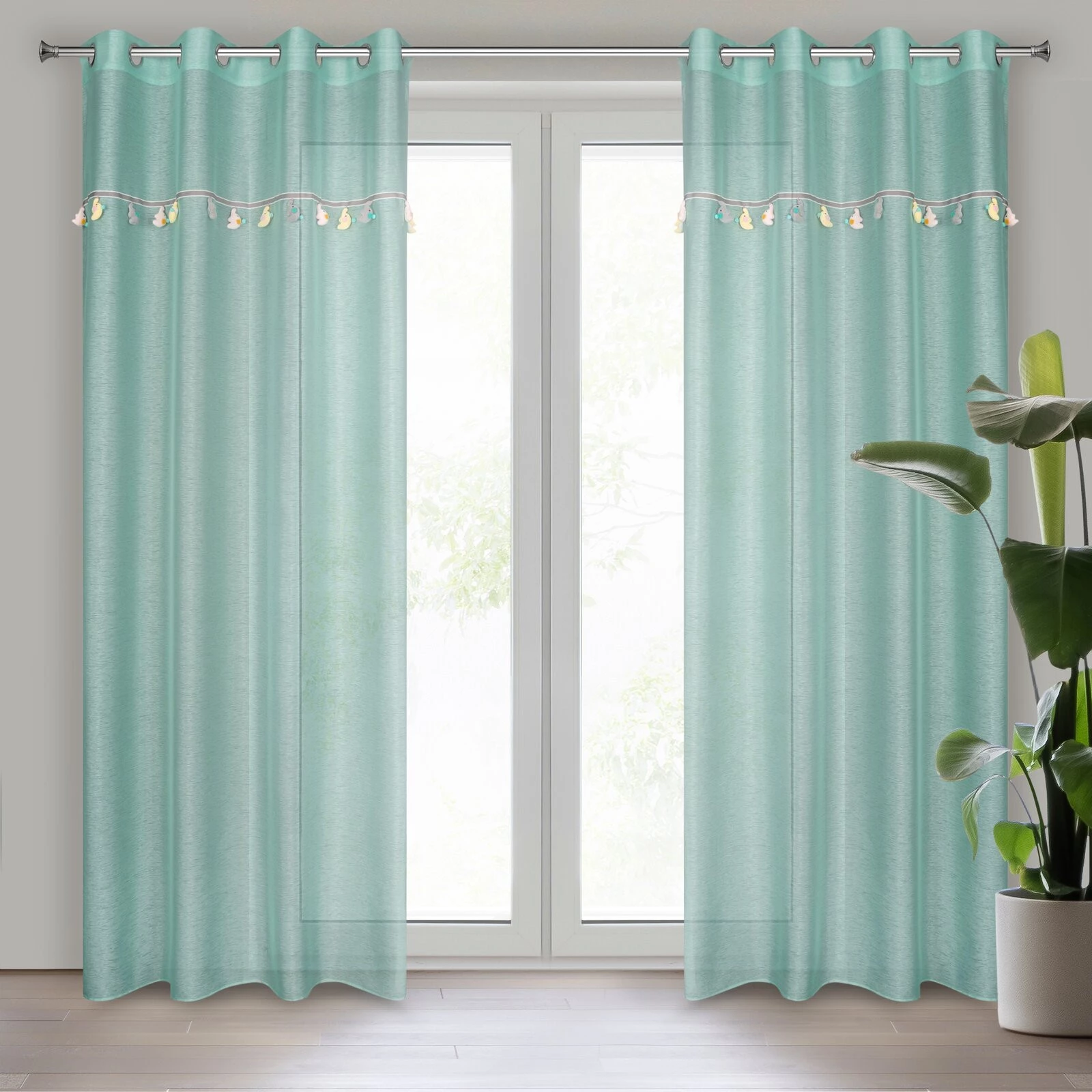- Firana gotowa z wszytą taśmą dekoracyjną z motywem dziecięcym szerokość: 140 cm, długość: 250 cm, kolor: miętowy, Gramatura: 50 GSM, Skład: 100% poliester