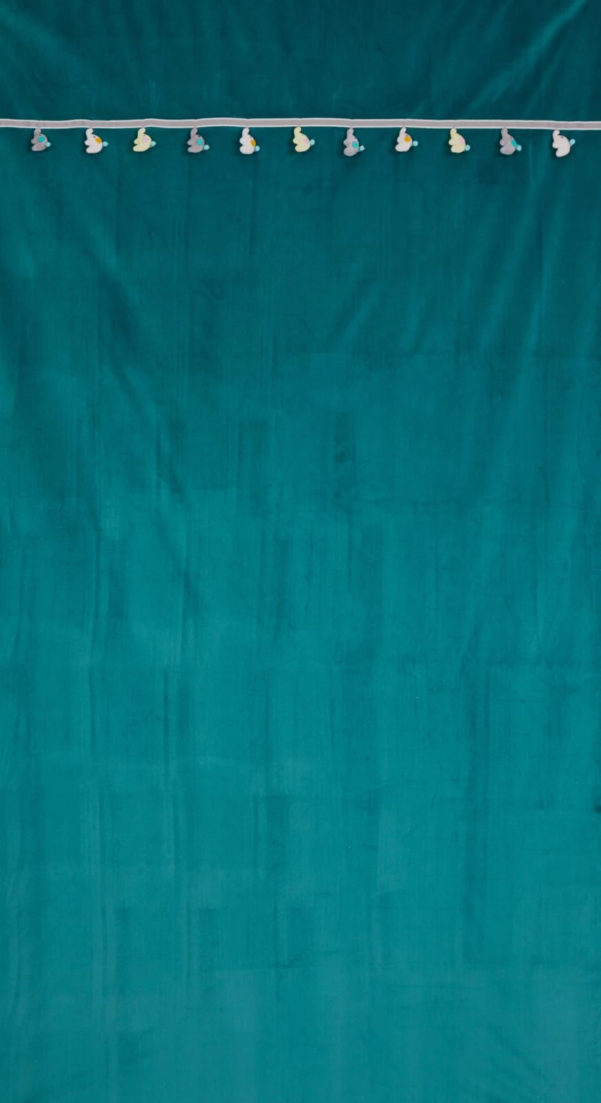 - Zasłona gotowa z wszytą taśmą dekoracyjną z motywem dziecięcym szerokość: 140 cm, długość: 250 cm, kolor: ciemnoturkusowy, Gramatura: 200 GSM, Skład: 100% poliester
