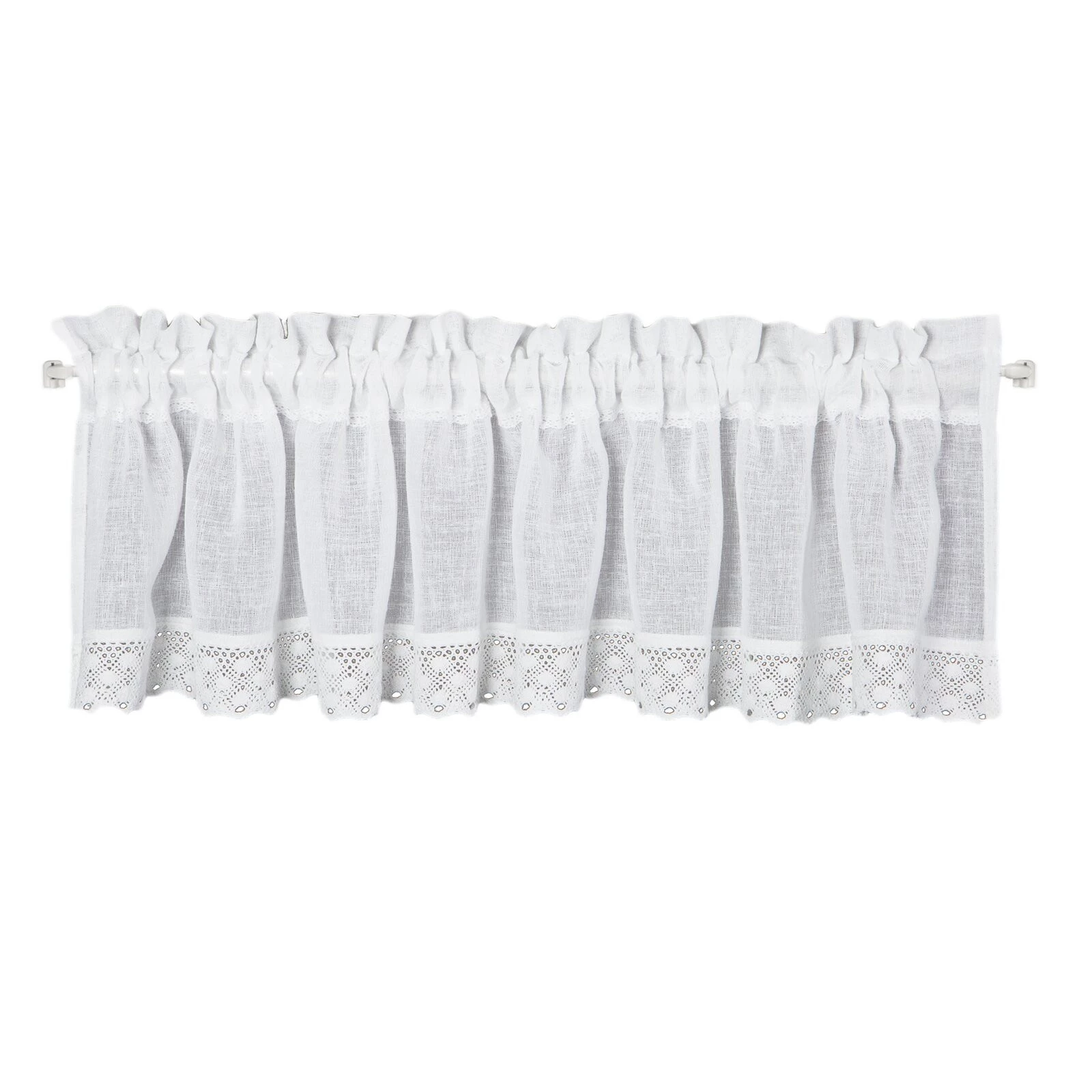Zazdrostka zdobiona koronką szerokość: 150 cm, długość: 30 cm, kolor: biały, Gramatura: 110 GSM, Skład: 100% poliester