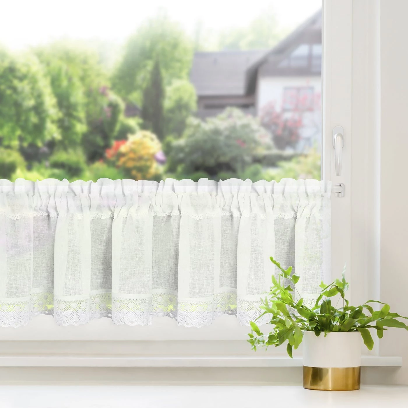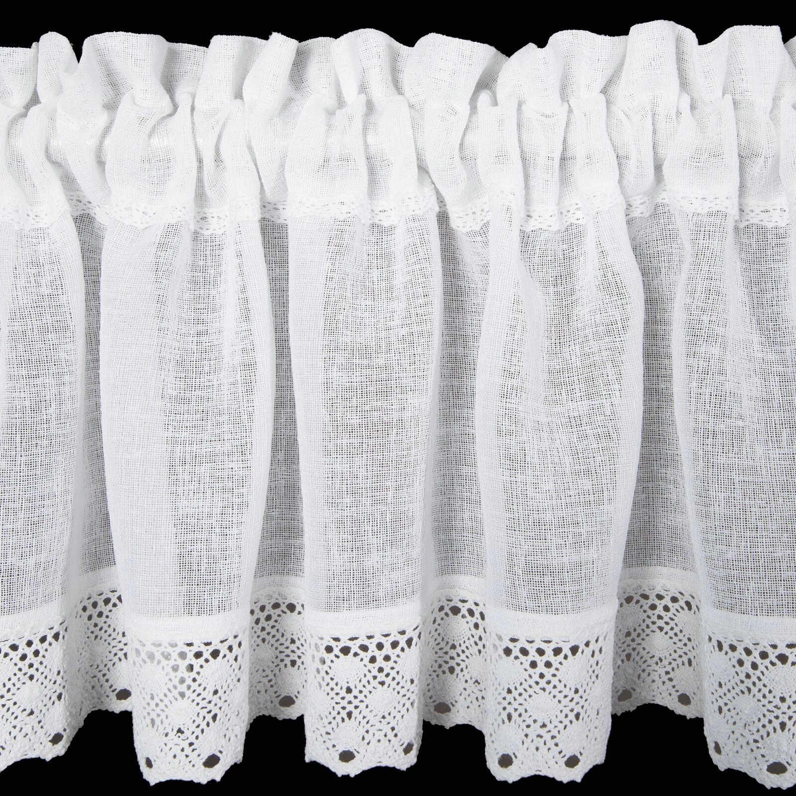 - Zazdrostka zdobiona koronką szerokość: 150 cm, długość: 30 cm, kolor: biały, Gramatura: 110 GSM, Skład: 100% poliester