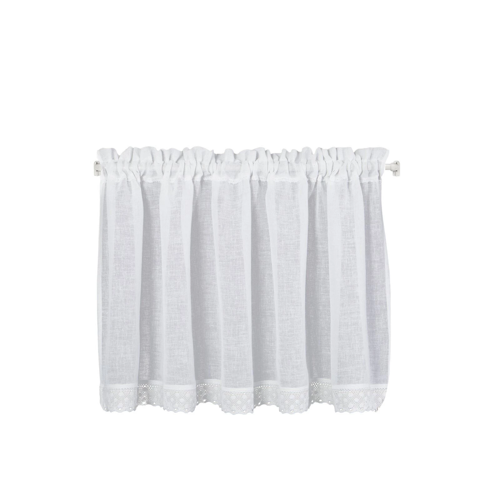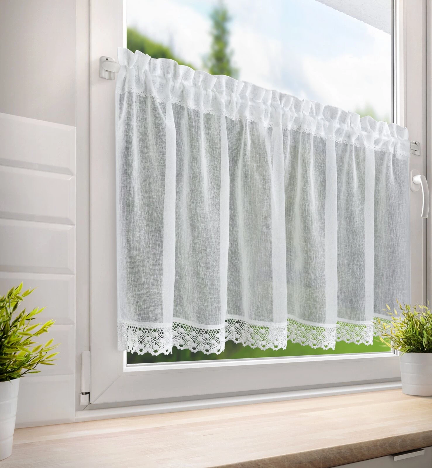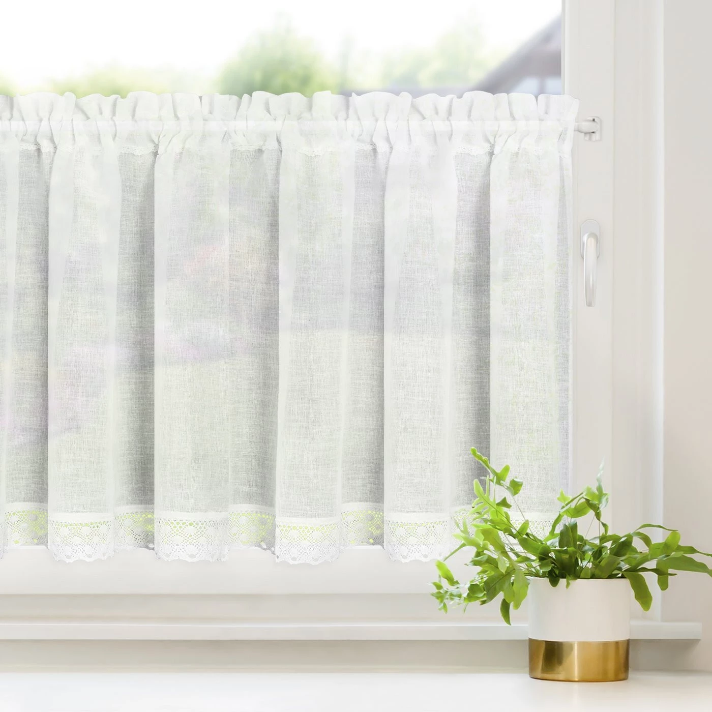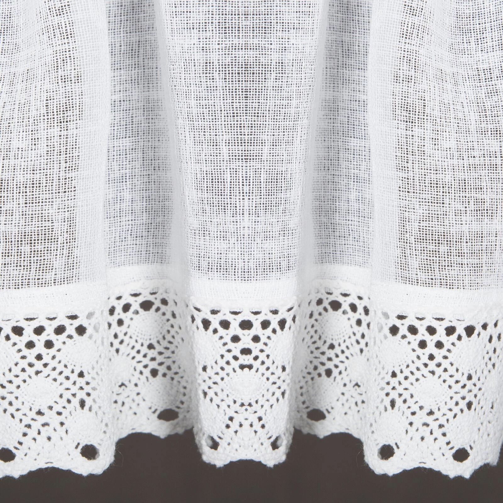 - Zazdrostka zdobiona koronką szerokość: 150 cm, długość: 60 cm, kolor: biały, Gramatura: 110 GSM, Skład: 100% poliester