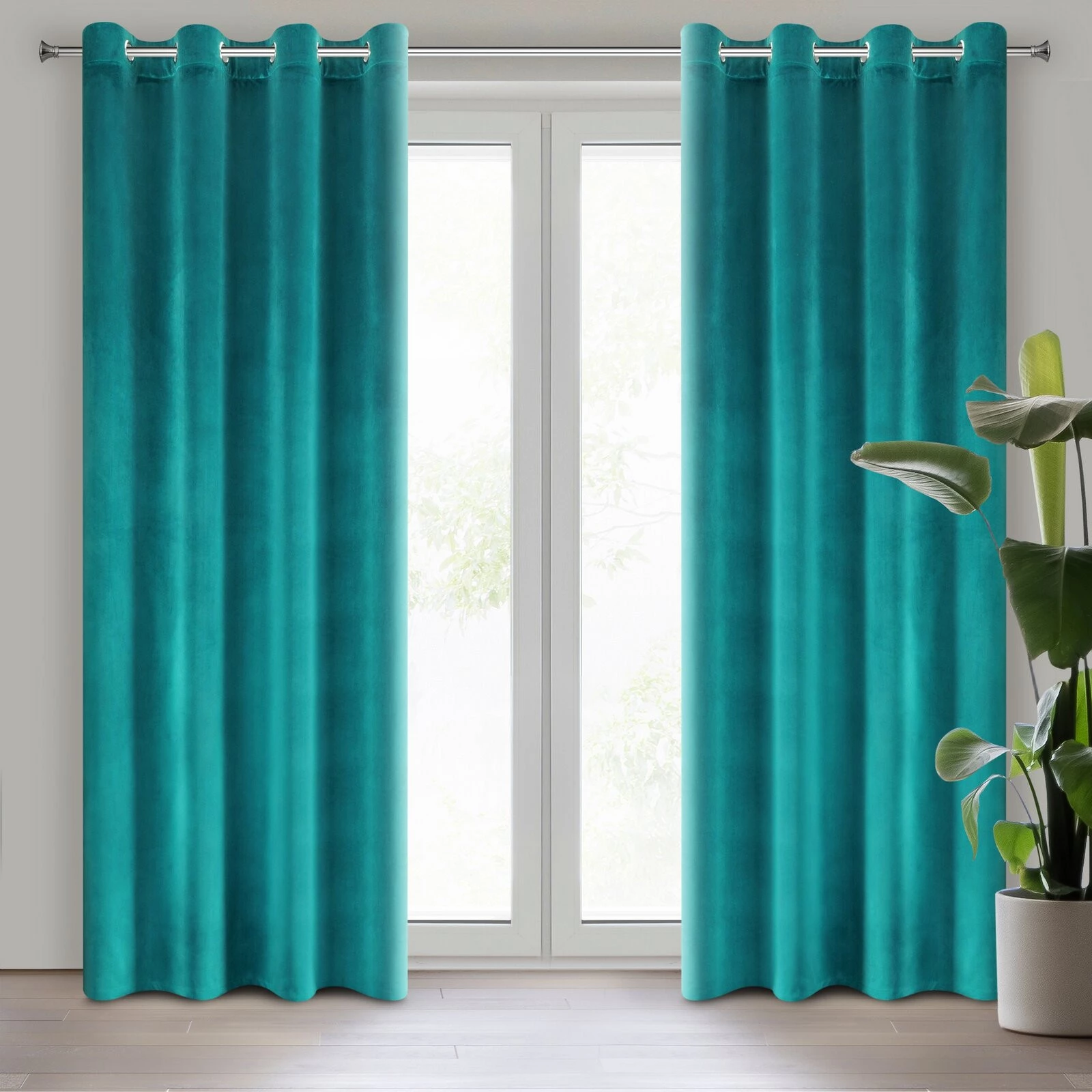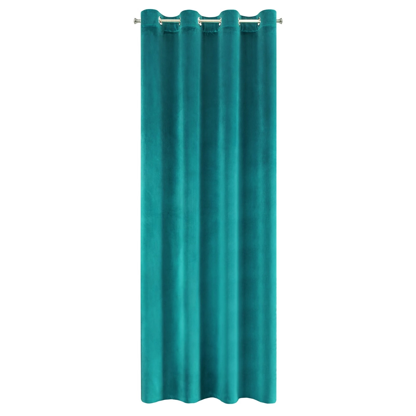 Lekka, welwetowa zasłona z miękkiej tkaniny o subtelnym połysku, charakterystycznym dla welwetów. Miękko się układa. Prasować na lewą stronę. szerokość: 140 cm, długość: 250 cm, kolor: turkusowy, Gramatura: 190 GSM, Skład: 100% poliester