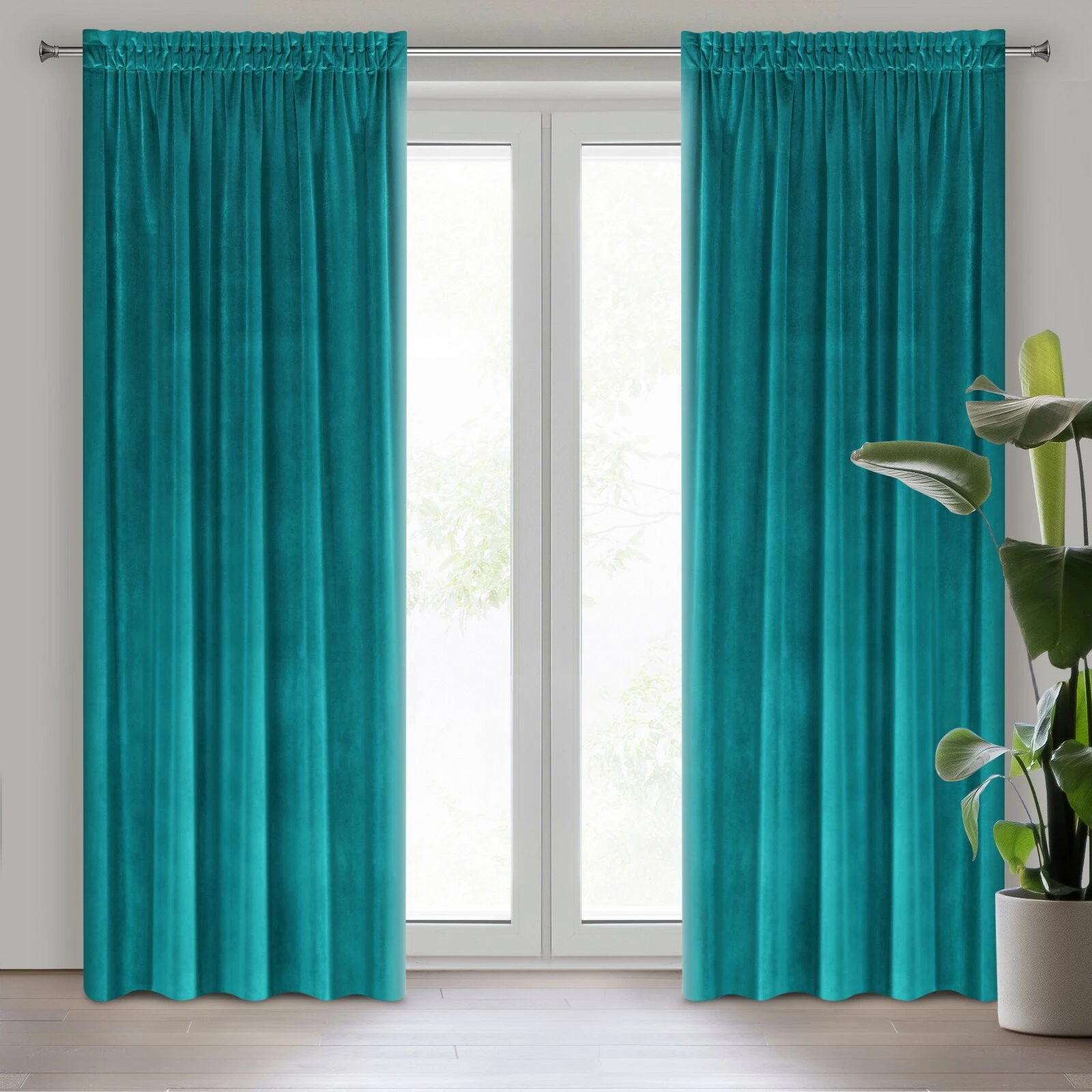 Lekka, welwetowa zasłona z miękkiej tkaniny o subtelnym połysku, charakterystycznym dla welwetów. Miękko się układa. Prasować na lewą stronę. szerokość: 140 cm, długość: 270 cm, kolor: turkusowy, Gramatura: 190 GSM, Skład: 100% poliester