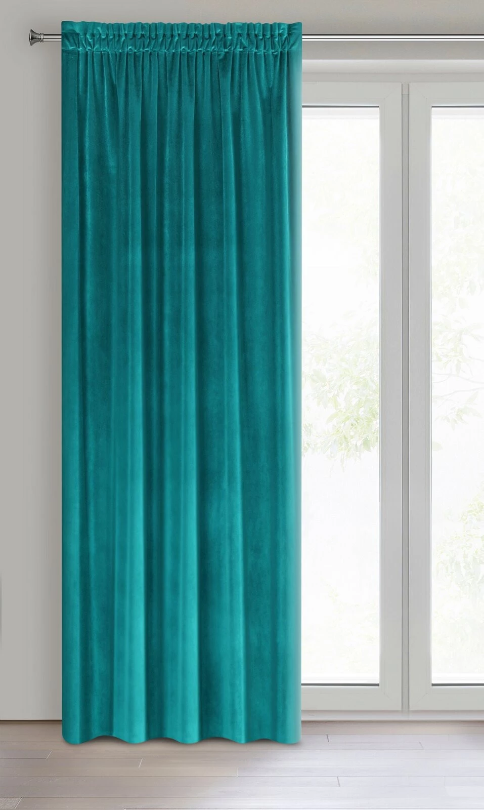 - Lekka, welwetowa zasłona z miękkiej tkaniny o subtelnym połysku, charakterystycznym dla welwetów. Miękko się układa. Prasować na lewą stronę. szerokość: 140 cm, długość: 270 cm, kolor: turkusowy, Gramatura: 190 GSM, Skład: 100% poliester