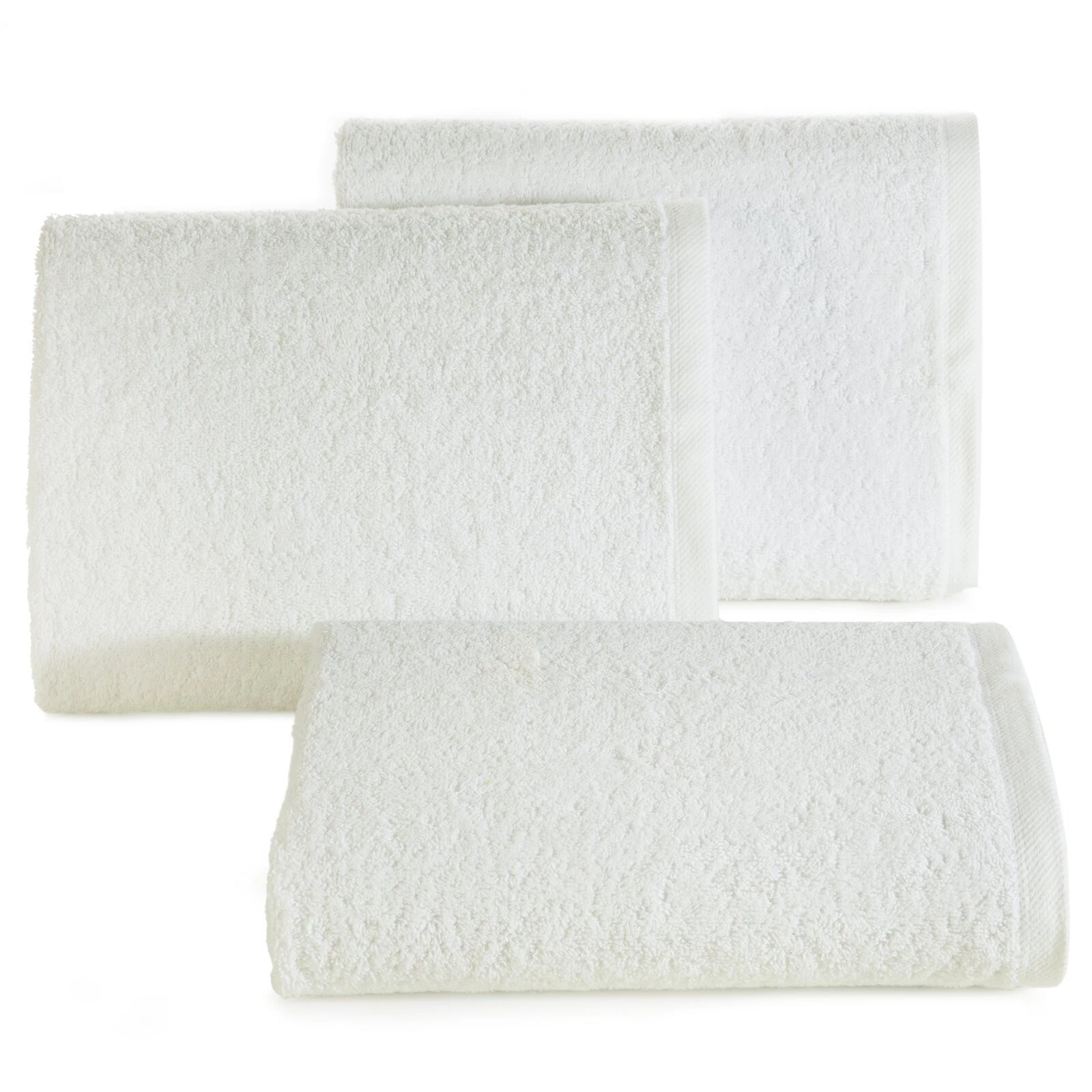 Jednokolorowy, gładki ręcznik kąpielowy z miękkiej tkaniny bawełnianej o splocie frotte. Lekki, trwały i bardzo chłonny. Kolory odporne na częste pranie. szerokość: 70 cm, długość: 140 cm, kolor: biały, Gramatura: 500 GSM, Skład: 100% bawełna