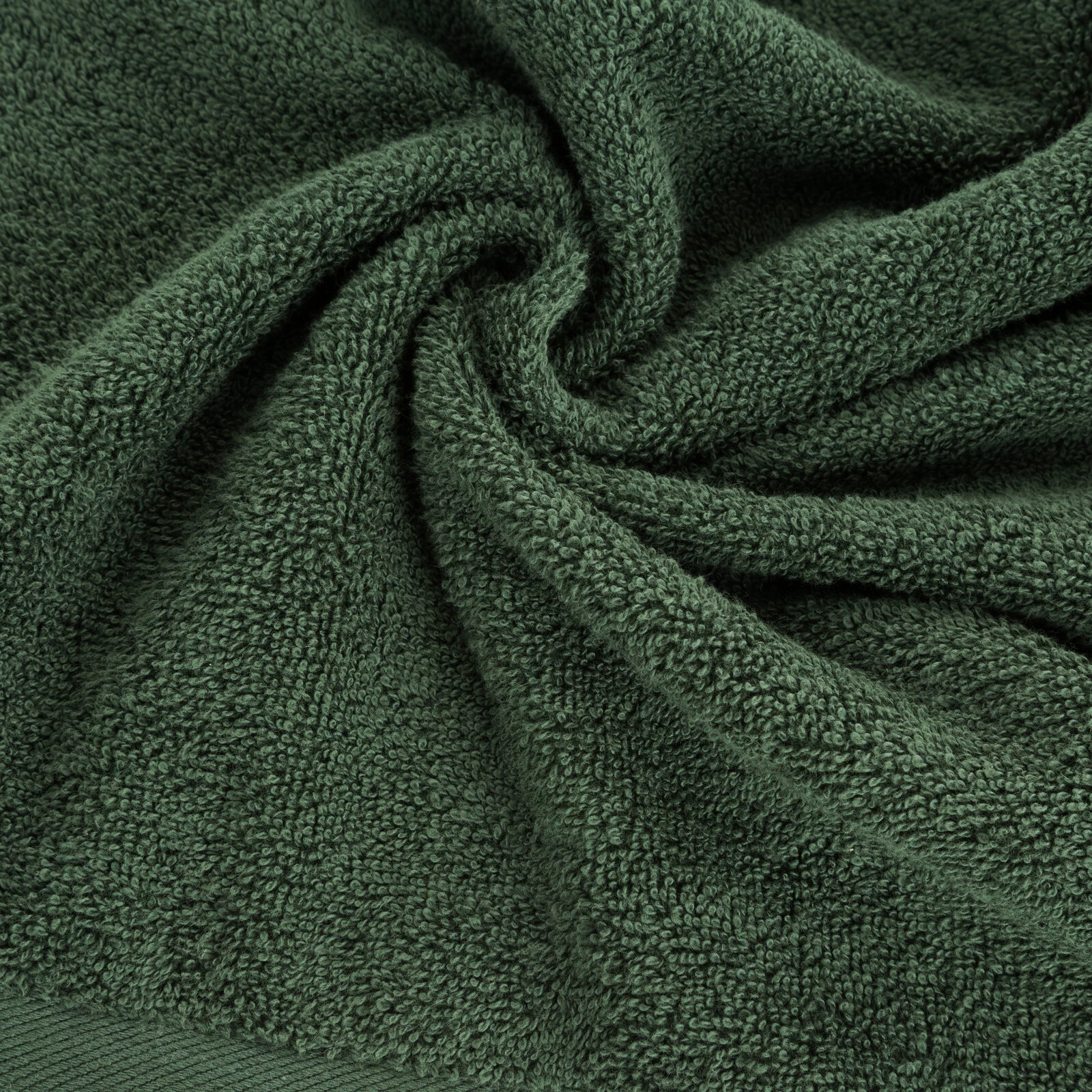 Jednokolorowy, gładki ręcznik kąpielowy z miękkiej tkaniny bawełnianej o splocie frotte. Lekki, trwały i bardzo chłonny. Kolory odporne na częste pranie. szerokość: 70 cm, długość: 140 cm, kolor: ciemnozielony, Gramatura: 500 GSM, Skład: 100% bawełna