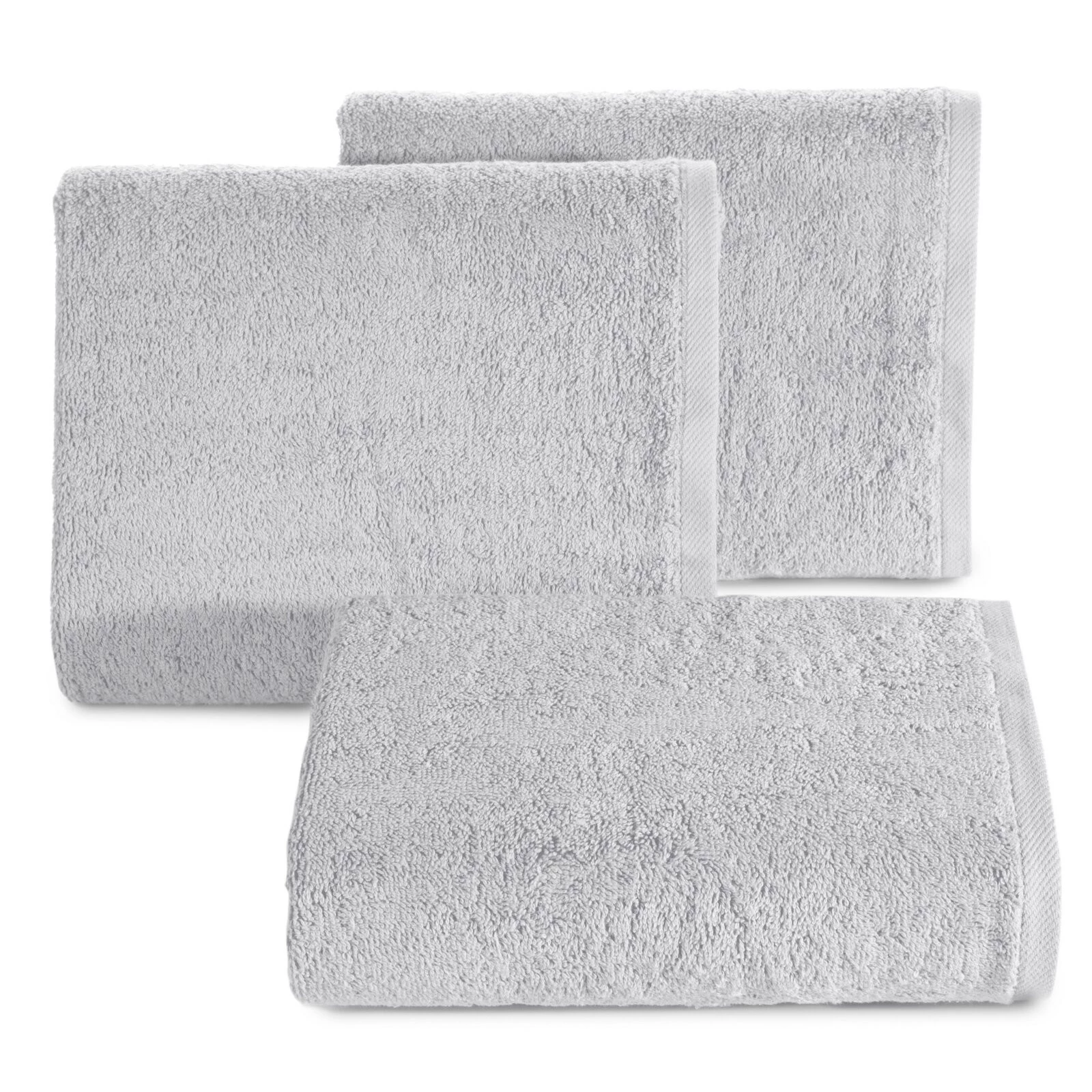 Jednokolorowy, gładki ręcznik kąpielowy z miękkiej tkaniny bawełnianej o splocie frotte. Lekki, trwały i bardzo chłonny. Kolory odporne na częste pranie. szerokość: 30 cm, długość: 50 cm, kolor: srebrny, Gramatura: 500 GSM, Skład: 100% bawełna
