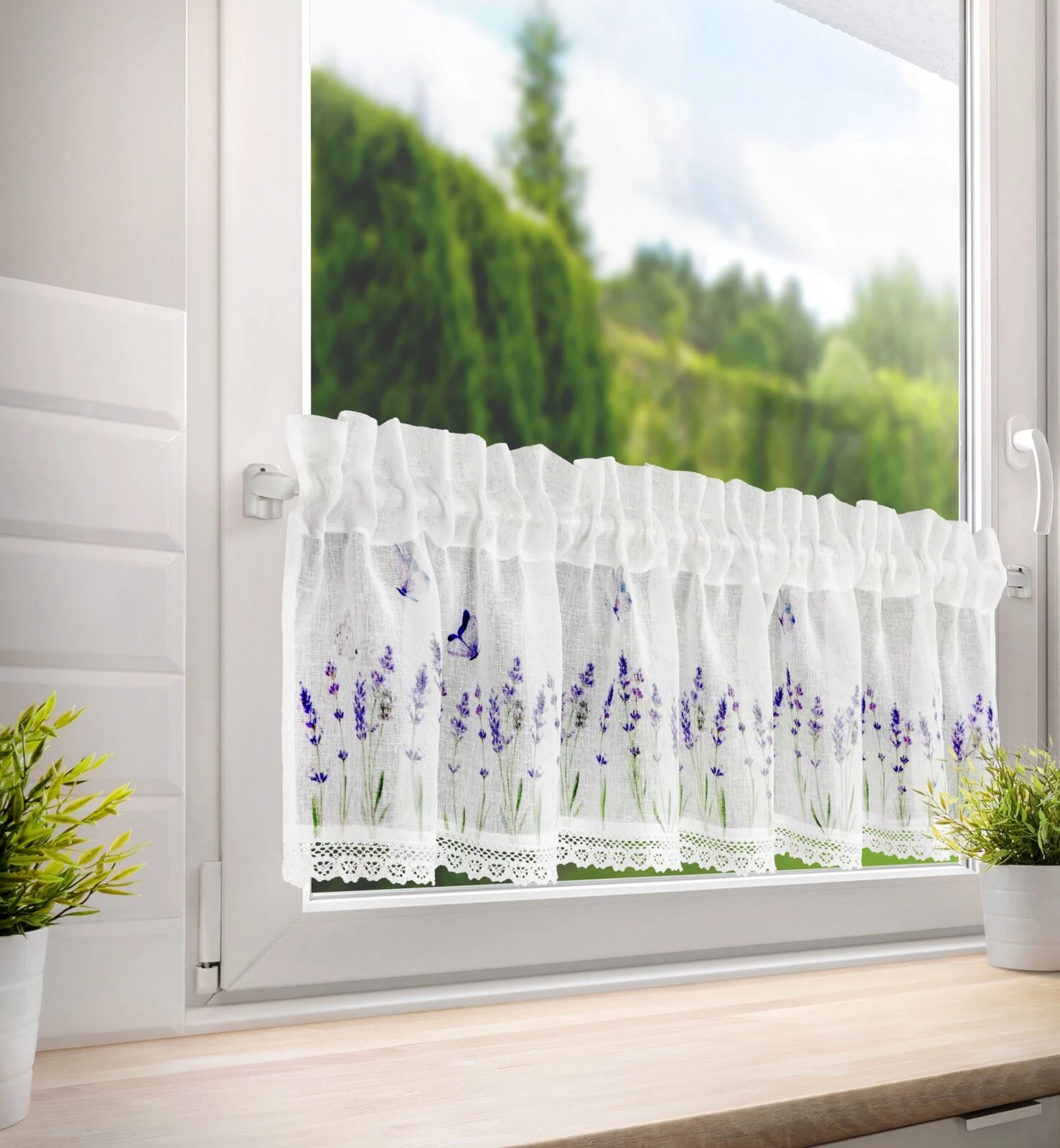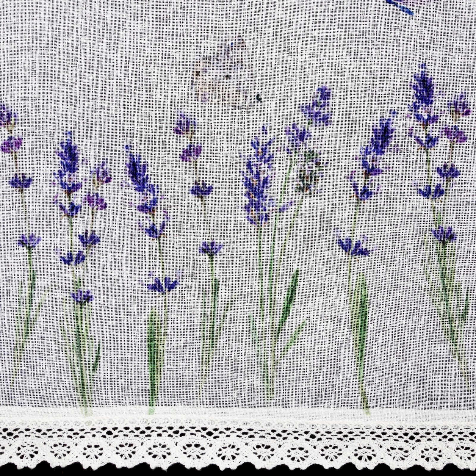 - Zazdrostka z nadrukiem zdobiona koronką szerokość: 150 cm, długość: 30 cm, kolor: biały, Gramatura: 110 GSM, Skład: 100% poliester