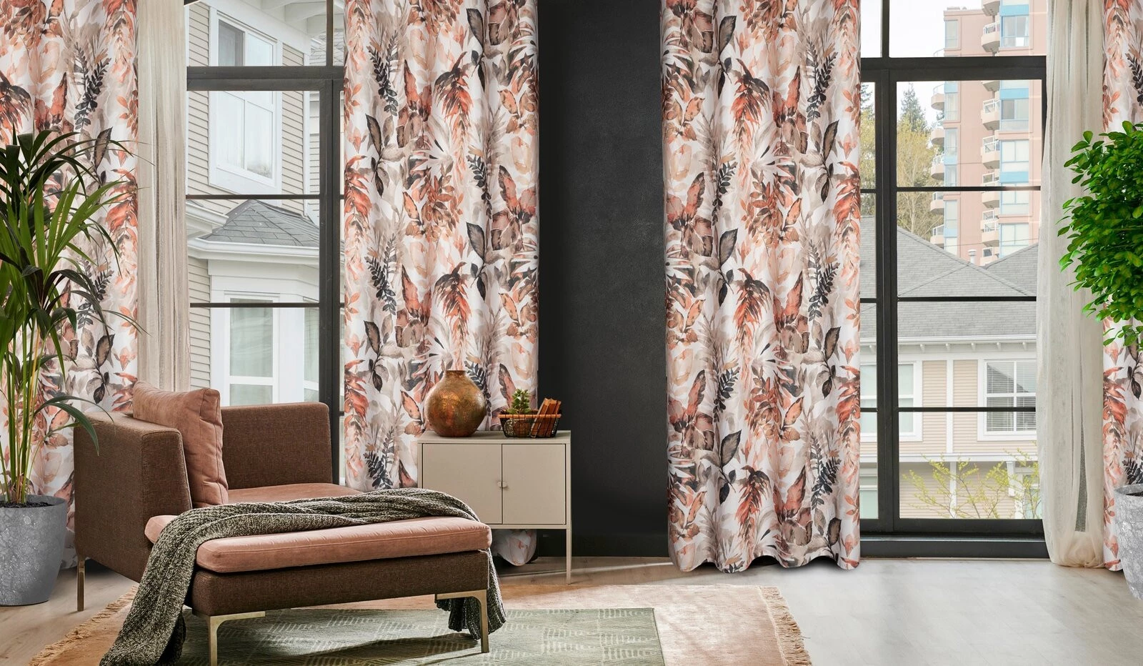 Zasłona gotowa z mikrofibry z nadrukiem szerokość: 140 cm, długość: 250 cm, kolor: biały, Gramatura: 75 GSM, Skład: 100% poliester