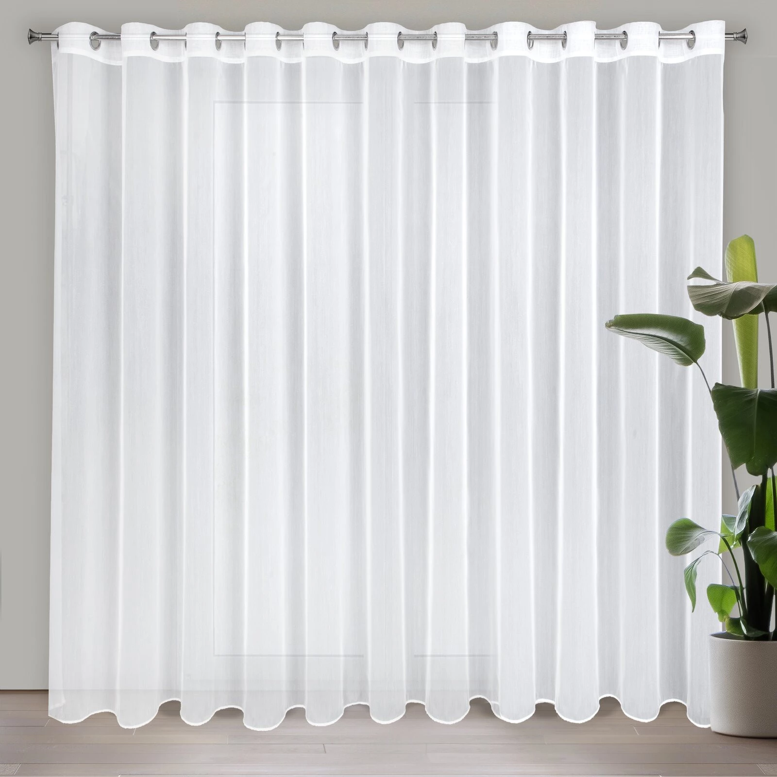 - Firana gotowa gładka błyszcząca szerokość: 350 cm, długość: 260 cm, kolor: biały, Gramatura: 50 GSM, Skład: 100% poliester