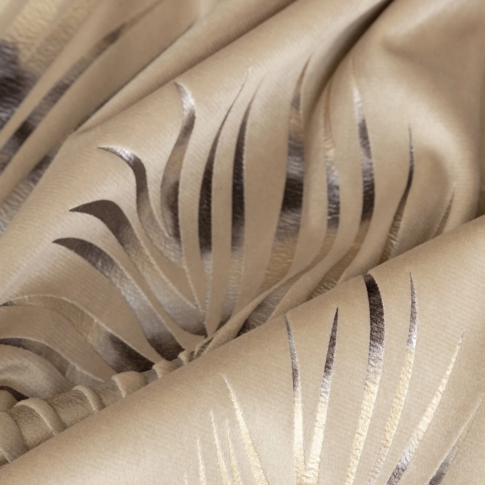 Zasłona welwetowa z cieniowanym błyszczącym nadrukiem szerokość: 140 cm, długość: 250 cm, kolor: beżowy, Gramatura: 200 GSM, Skład: 100% poliester