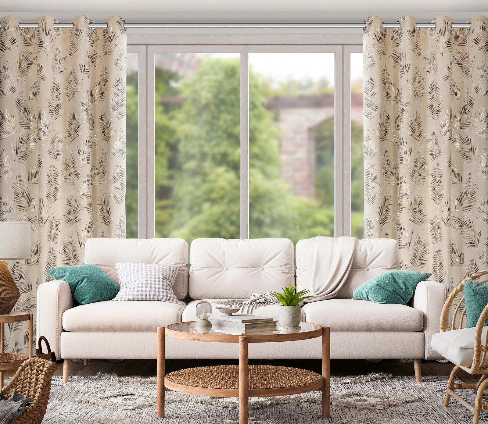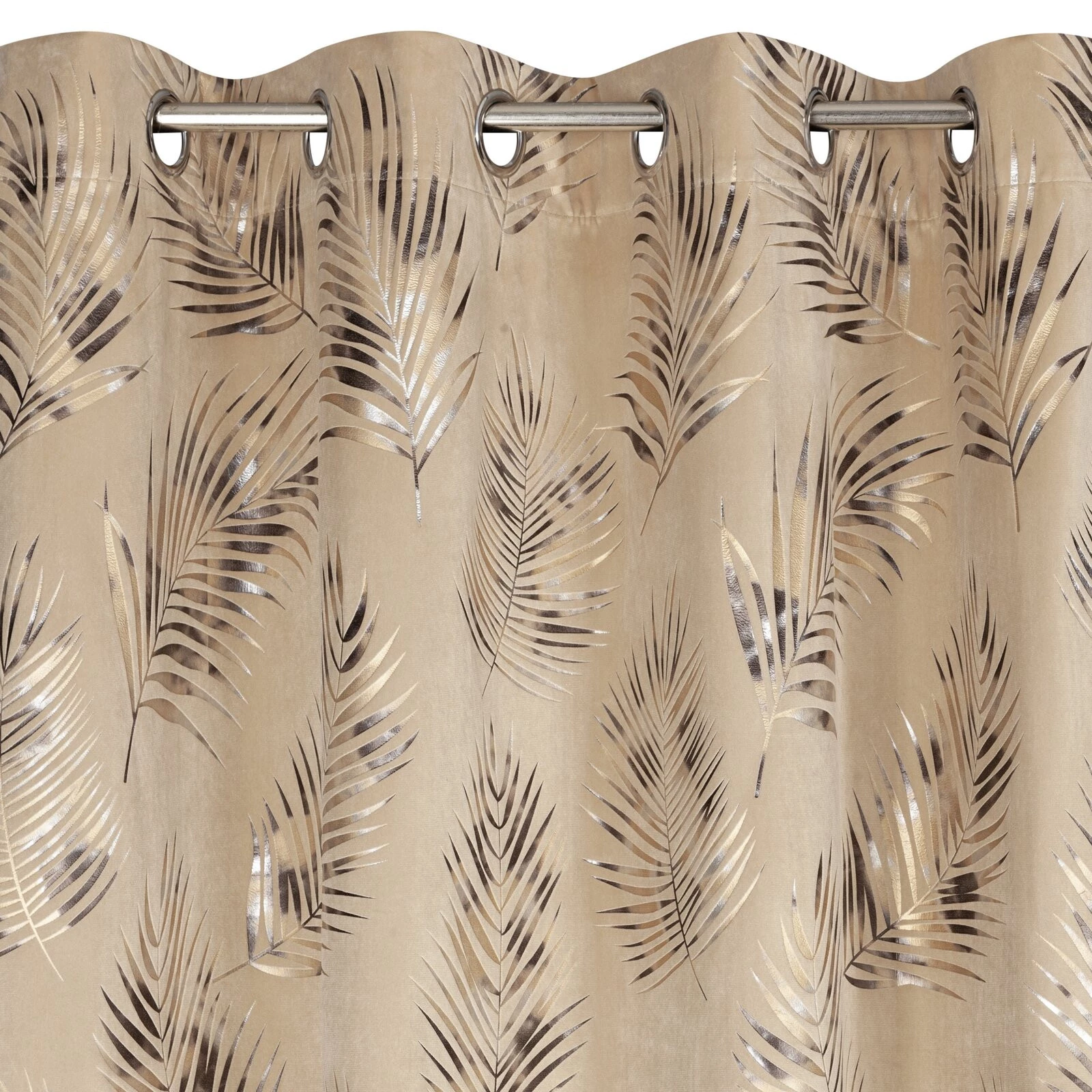 - Zasłona welwetowa z cieniowanym błyszczącym nadrukiem szerokość: 140 cm, długość: 250 cm, kolor: beżowy, Gramatura: 200 GSM, Skład: 100% poliester