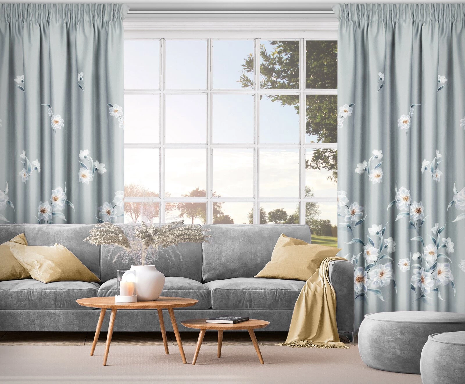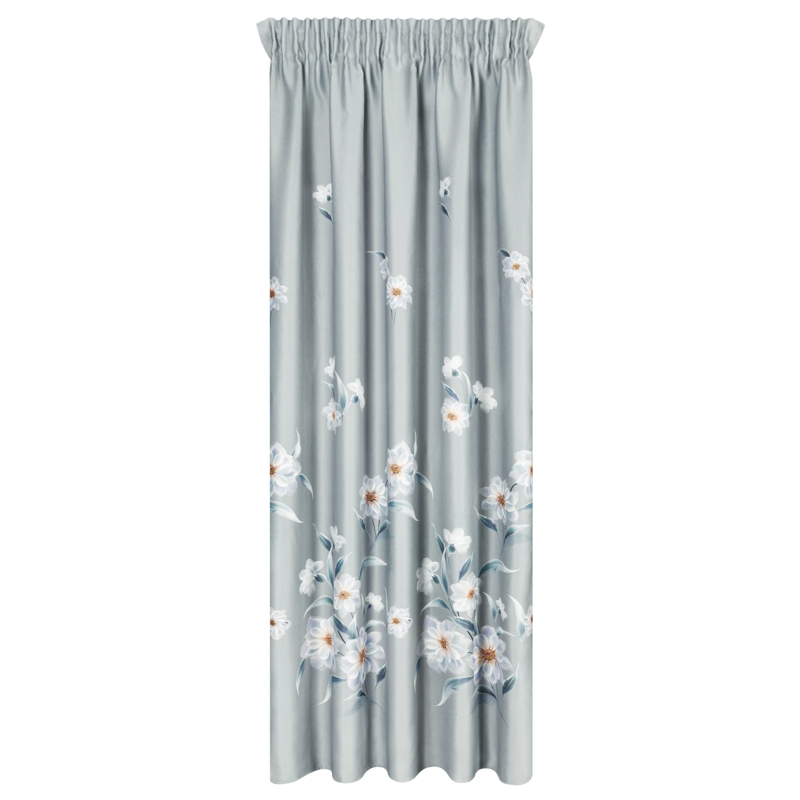 Zasłona zaciemniająca z kwiatowym nadrukiem szerokość: 140 cm, długość: 270 cm, kolor: srebrny, Gramatura: 210 GSM, Skład: 100% poliester