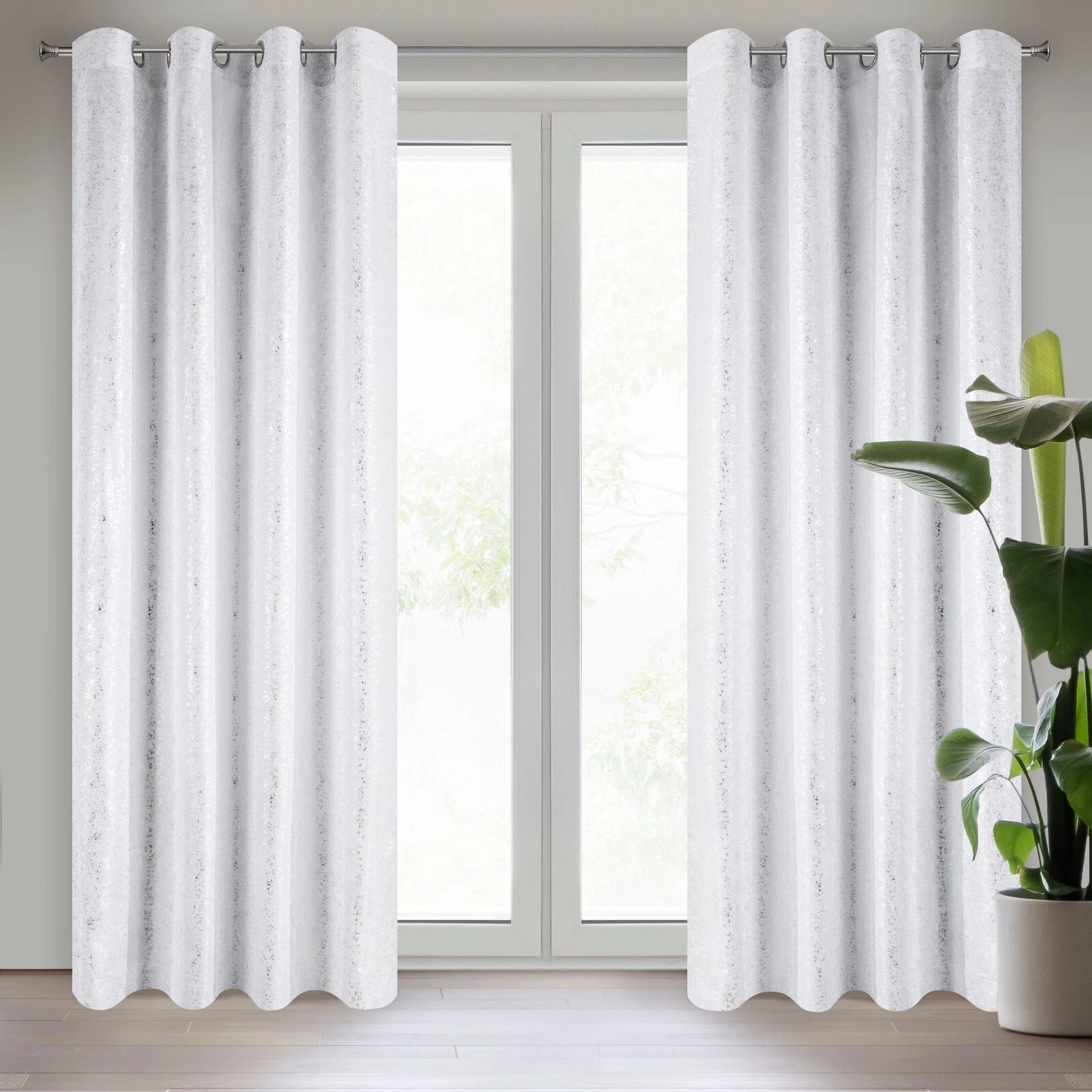 Oryginalna, nowoczesna dekoracja okienna w kolorze pudrowym z subtelnym, srebrnym nadrukiem. Bardzo lekka i kobieca. Świetna jako zasłona. szerokość: 140 cm, długość: 250 cm, kolor: biały, Gramatura: 70 GSM, Skład: 100% poliester