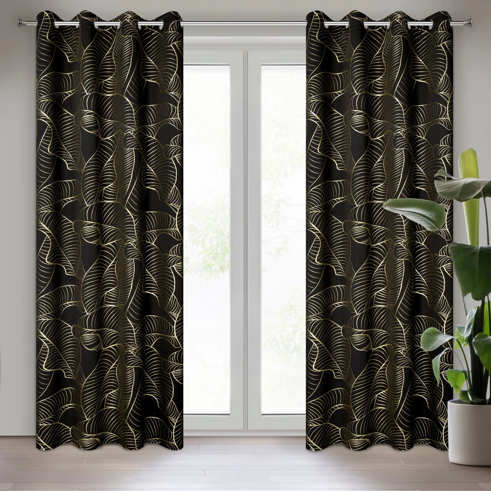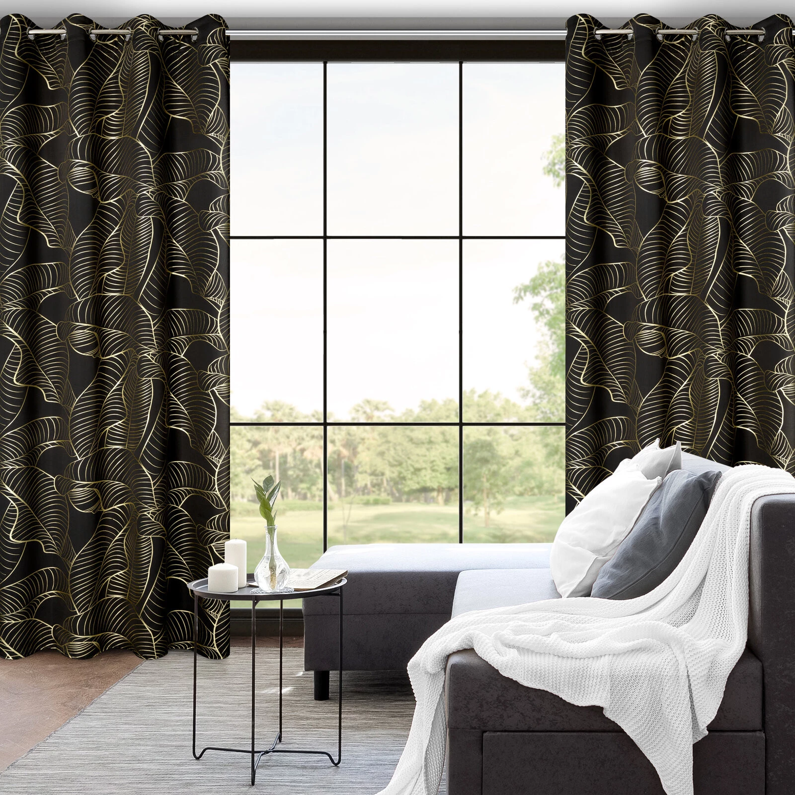 - Zasłona gotowa zaciemniająca z nadrukiem szampańskim szerokość: 140 cm, długość: 250 cm, kolor: czarny, Gramatura: 195 GSM, Skład: 100% poliester