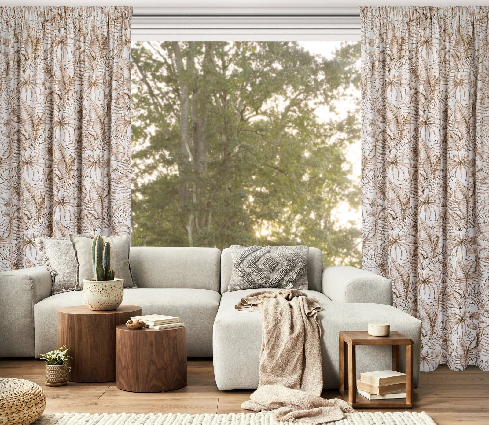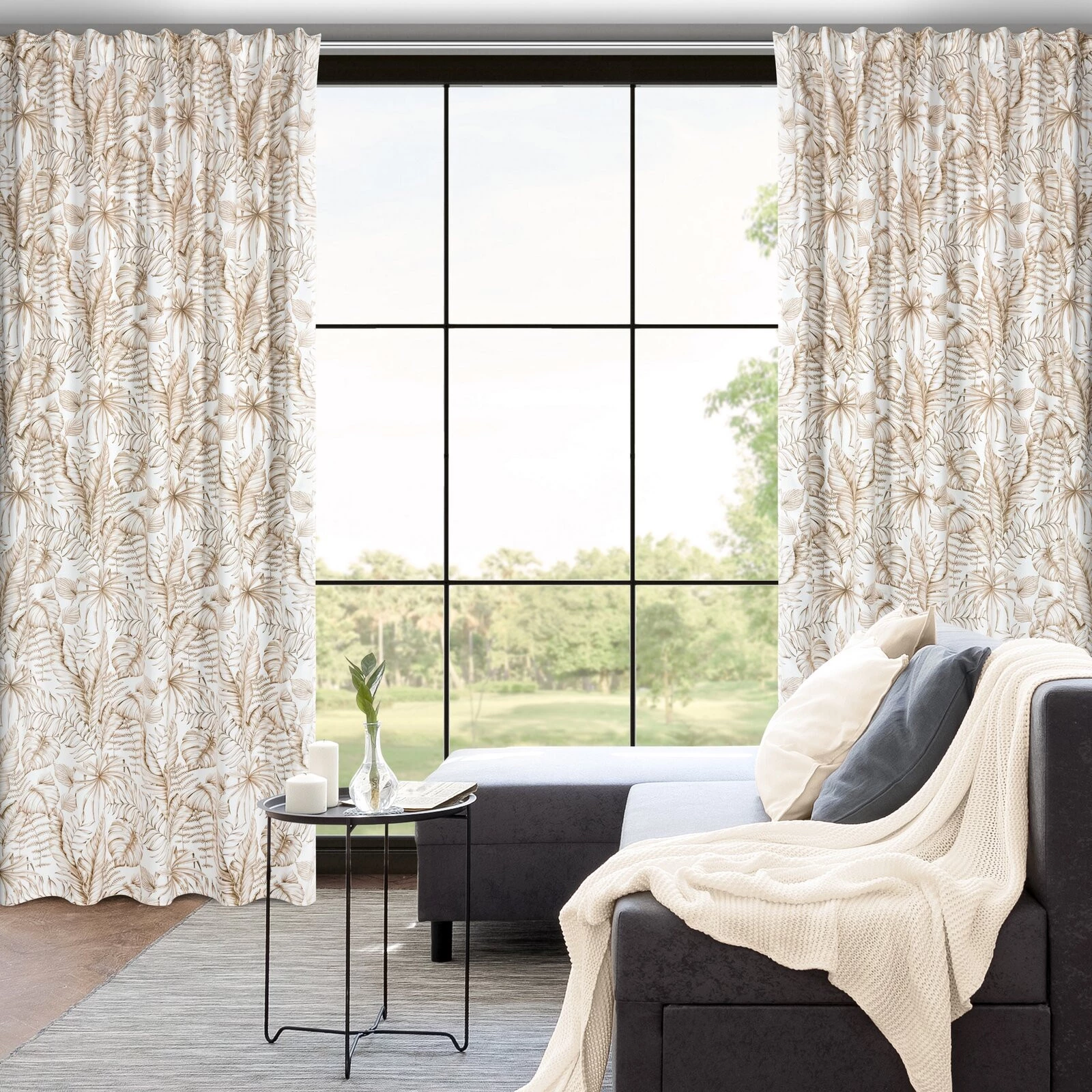 Zasłona gotowa z nadrukiem, na taśmie z ukrytymi szelkami szerokość: 140 cm, długość: 270 cm, kolor: biały, Gramatura: 200 GSM, Skład: 100% poliester