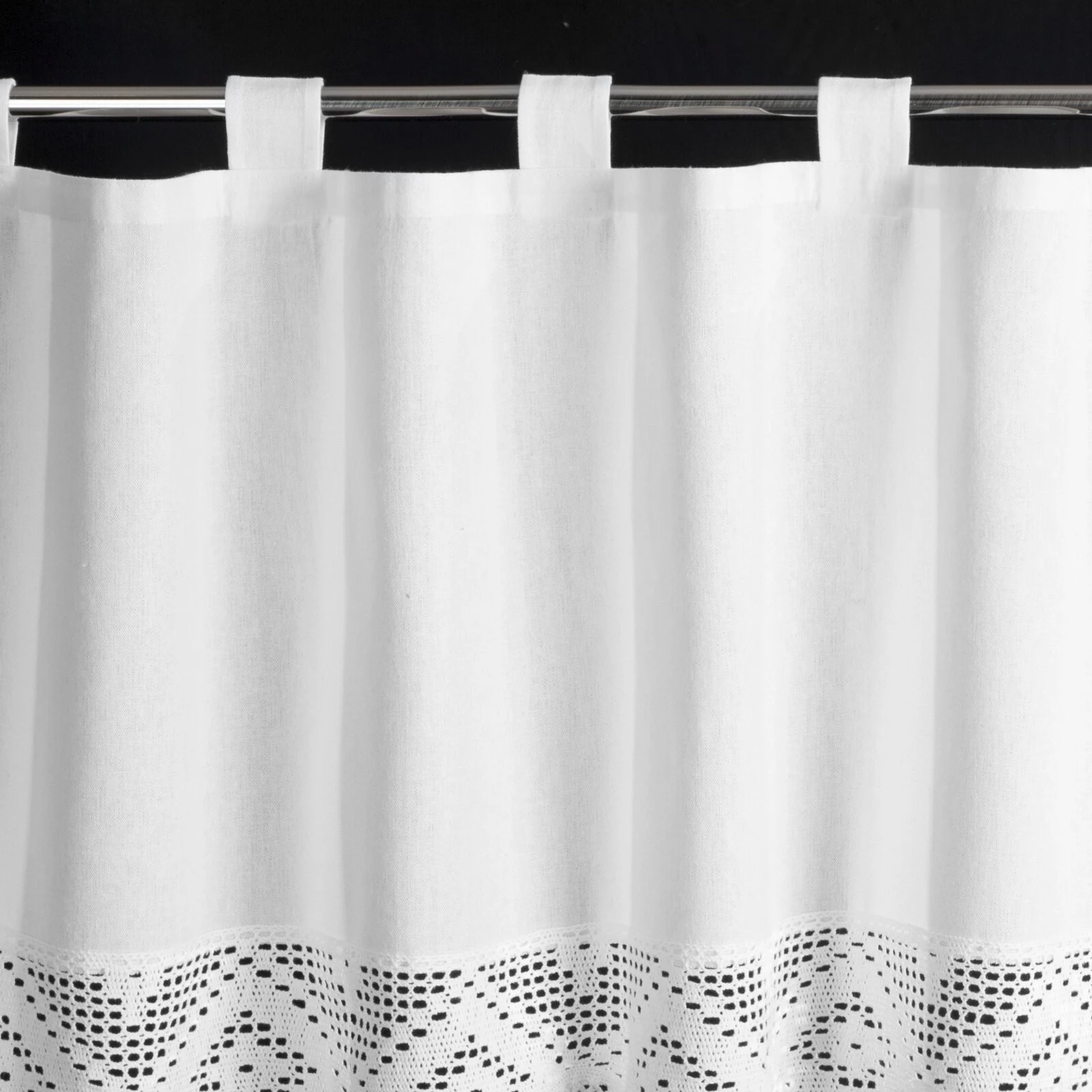 - Zazdrostka zdobiona koronką szerokość: 150 cm, długość: 60 cm, kolor: biały, Gramatura: 180 GSM, Skład: 60% bawełna, 40% poliester