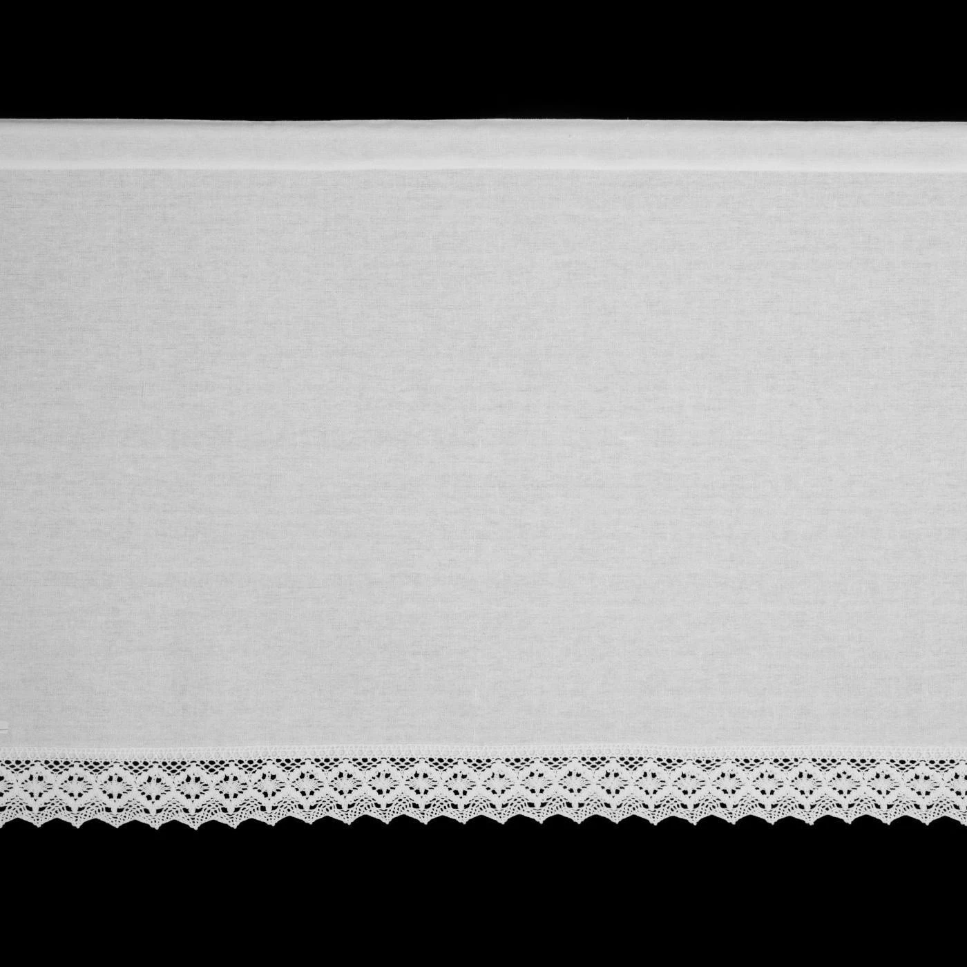 - Zazdrostka zdobiona koronką szerokość: 150 cm, długość: 60 cm, kolor: biały, Gramatura: 180 GSM, Skład: 60% bawełna, 40% poliester