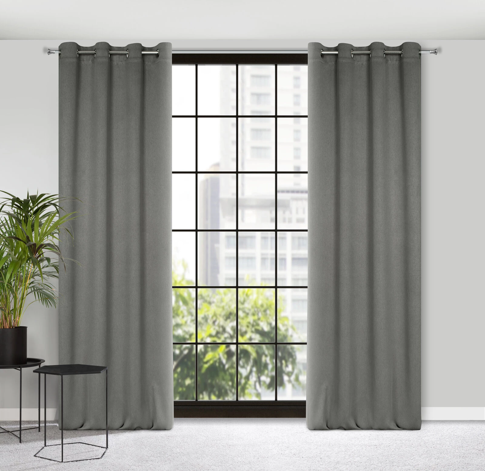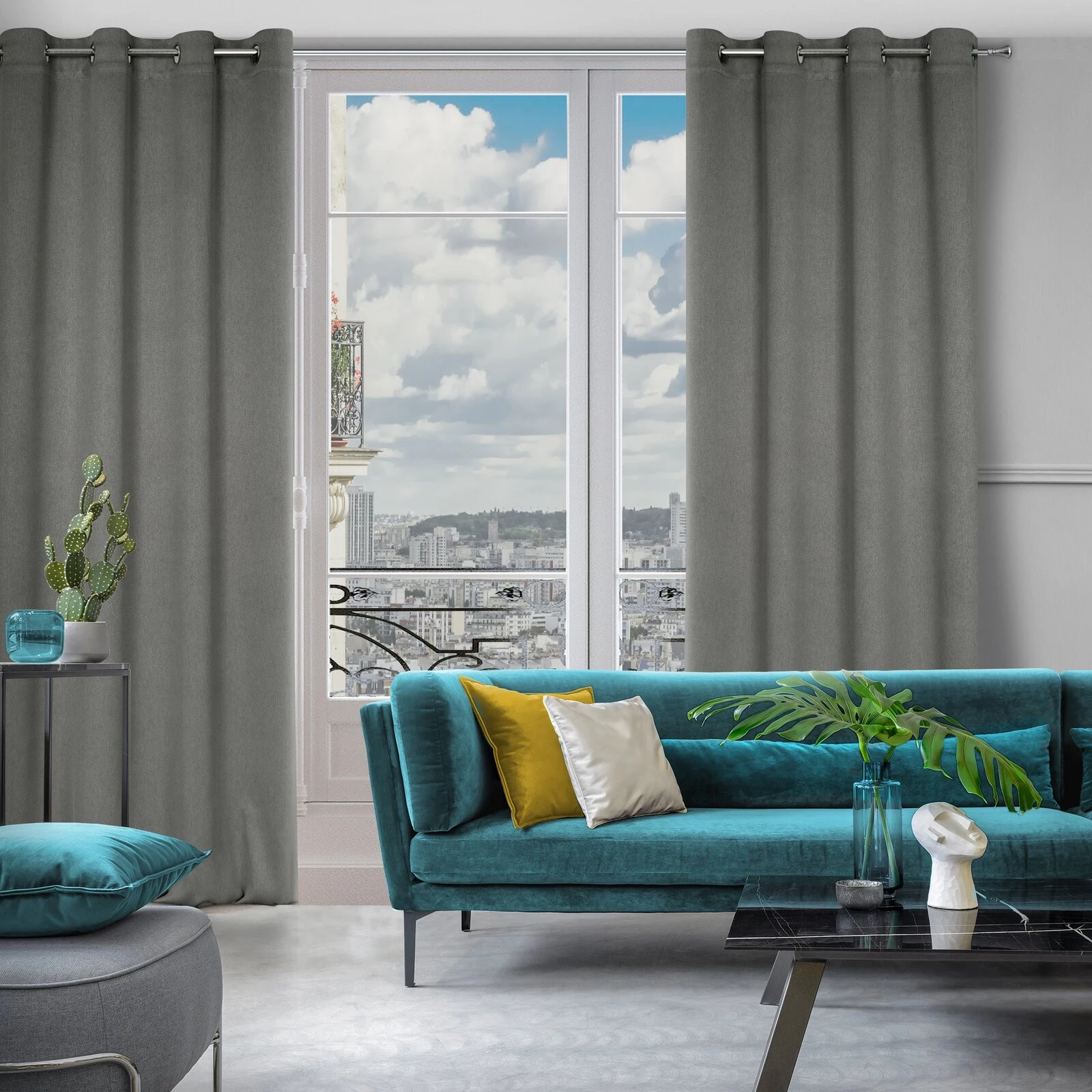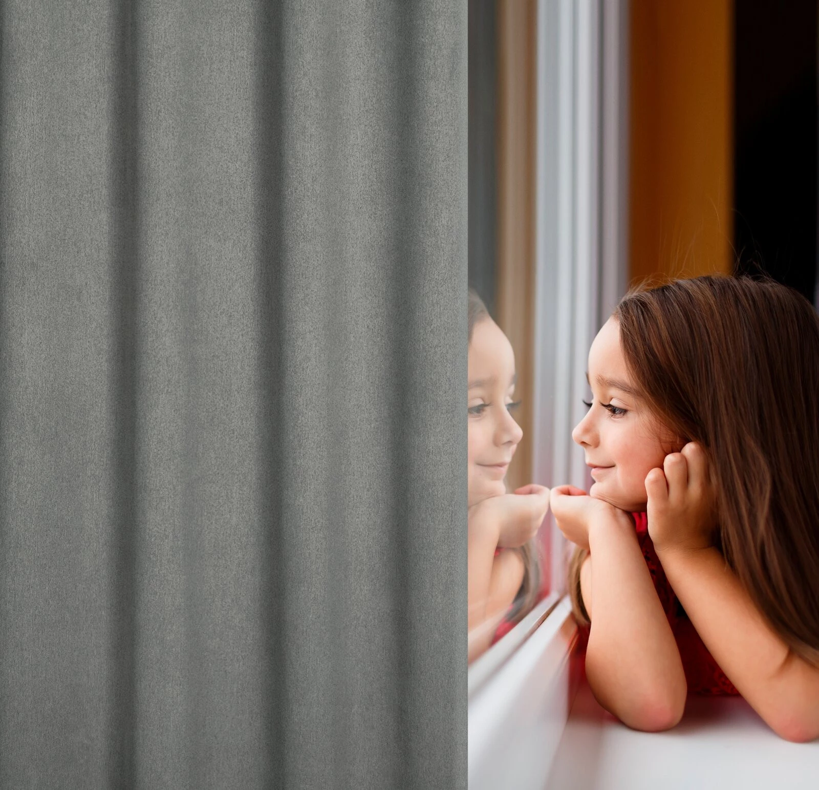 - Zasłona zaciemniająca jednokolorowa strukturalna typu blackout szerokość: 135 cm, długość: 250 cm, kolor: popielaty, Gramatura: 340 GSM, Skład: 100% poliester