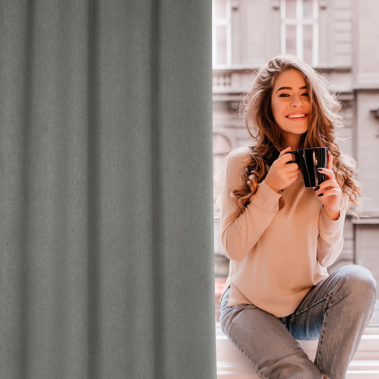 Zasłona zaciemniająca jednokolorowa strukturalna typu blackout szerokość: 135 cm, długość: 250 cm, kolor: popielaty, Gramatura: 340 GSM, Skład: 100% poliester