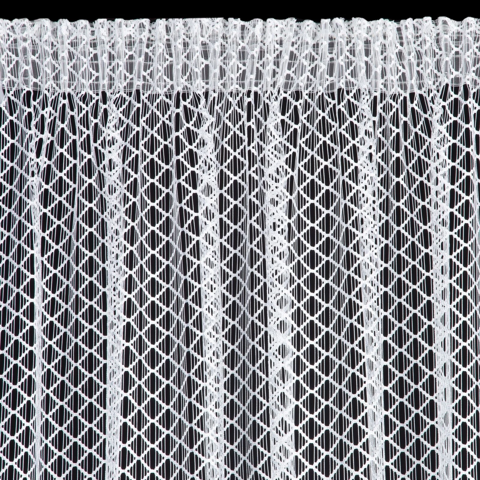 Nowoczesna firana z nieregularnej siateczki o subtelnym połysku i róznej wielkości oczek. Doskonała również w roli dekoracyjnej zasłony. Nie należy wybielać. szerokość: 140 cm, długość: 270 cm, kolor: biały, Gramatura: 75 GSM, Skład: 100% poliester