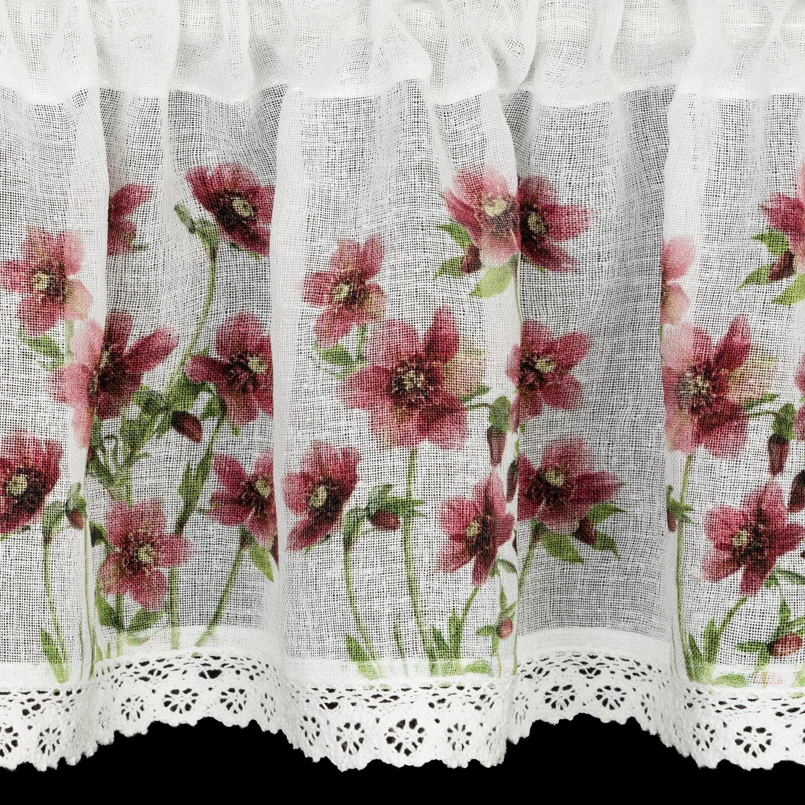 - Zazdrostka z nadrukiem zdobiona koronką szerokość: 150 cm, długość: 30 cm, kolor: biały, Gramatura: 110 GSM, Skład: 100% poliester