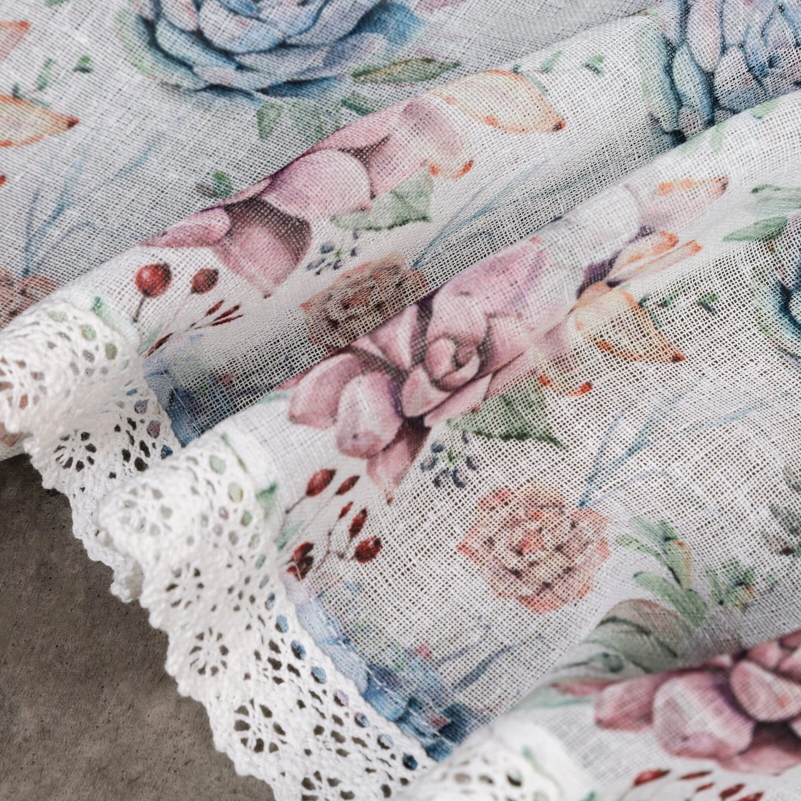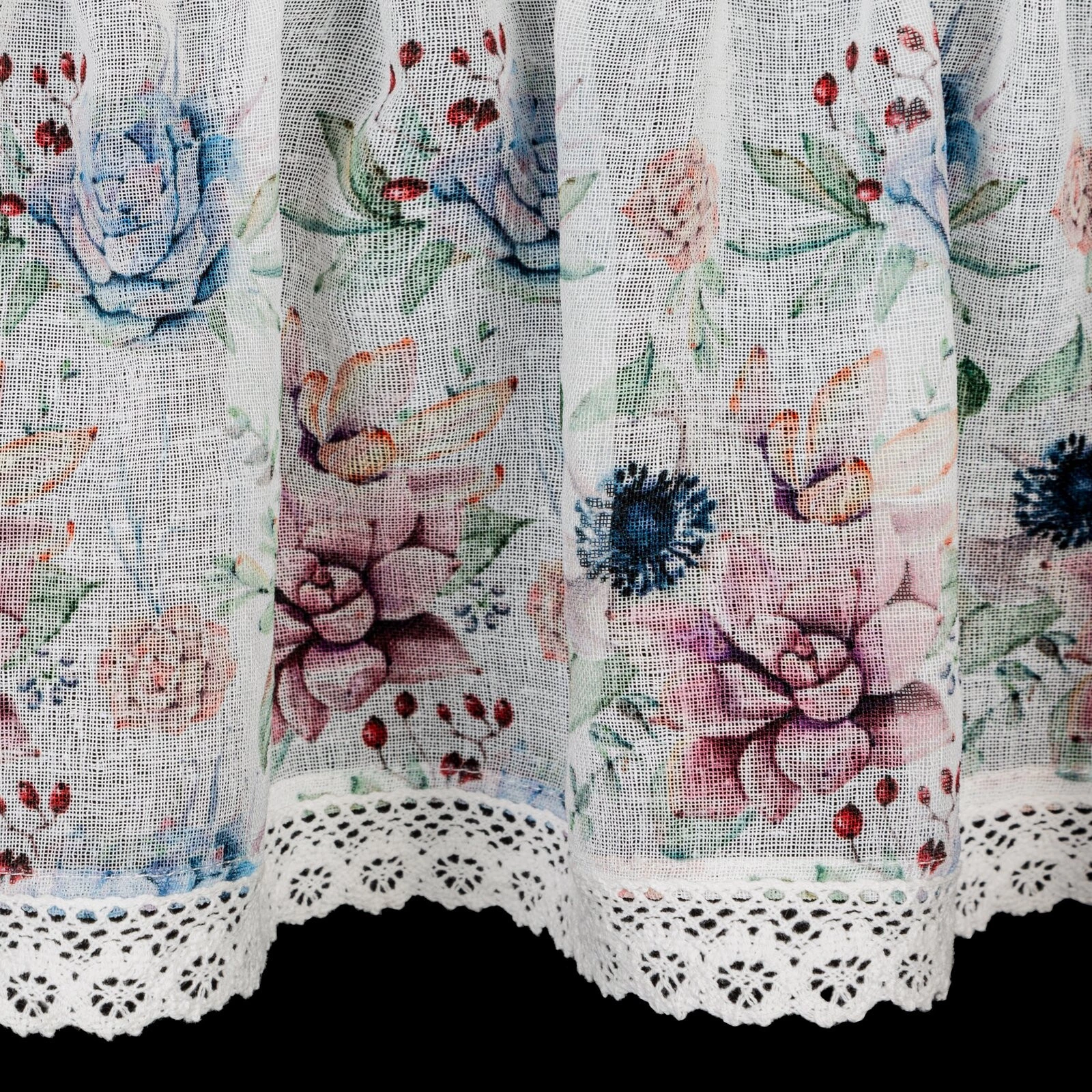 - Zazdrostka z nadrukiem zdobiona koronką szerokość: 150 cm, długość: 30 cm, kolor: biały, Gramatura: 110 GSM, Skład: 100% poliester