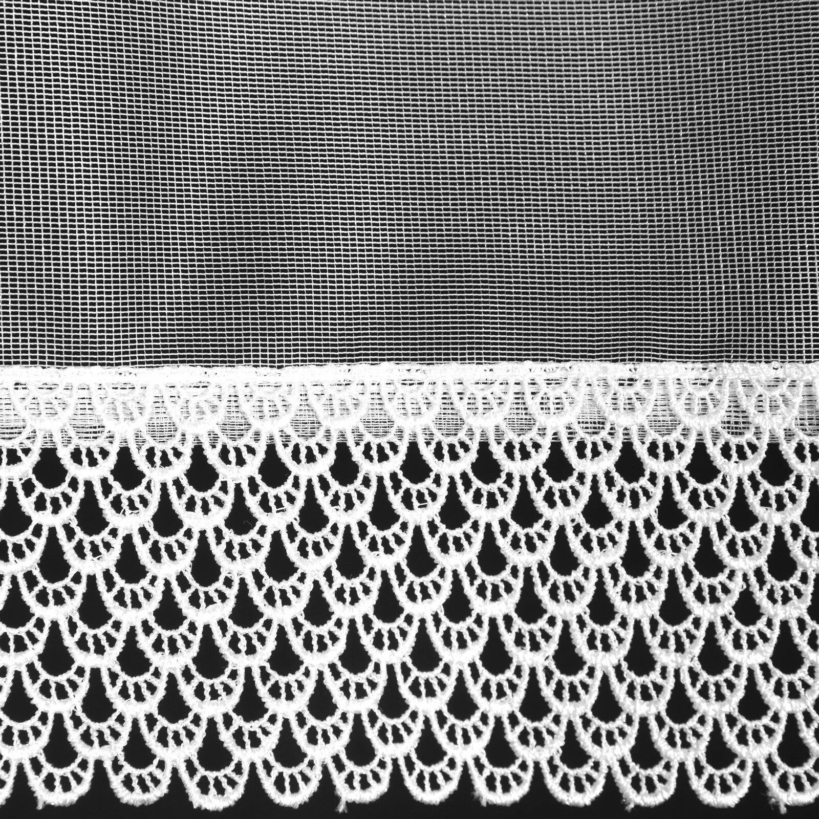 Firana gotowa z ozdobną koronką szerokość: 300 cm, długość: 145 cm, kolor: biały, Gramatura: 40 GSM, Skład: 100% poliester
