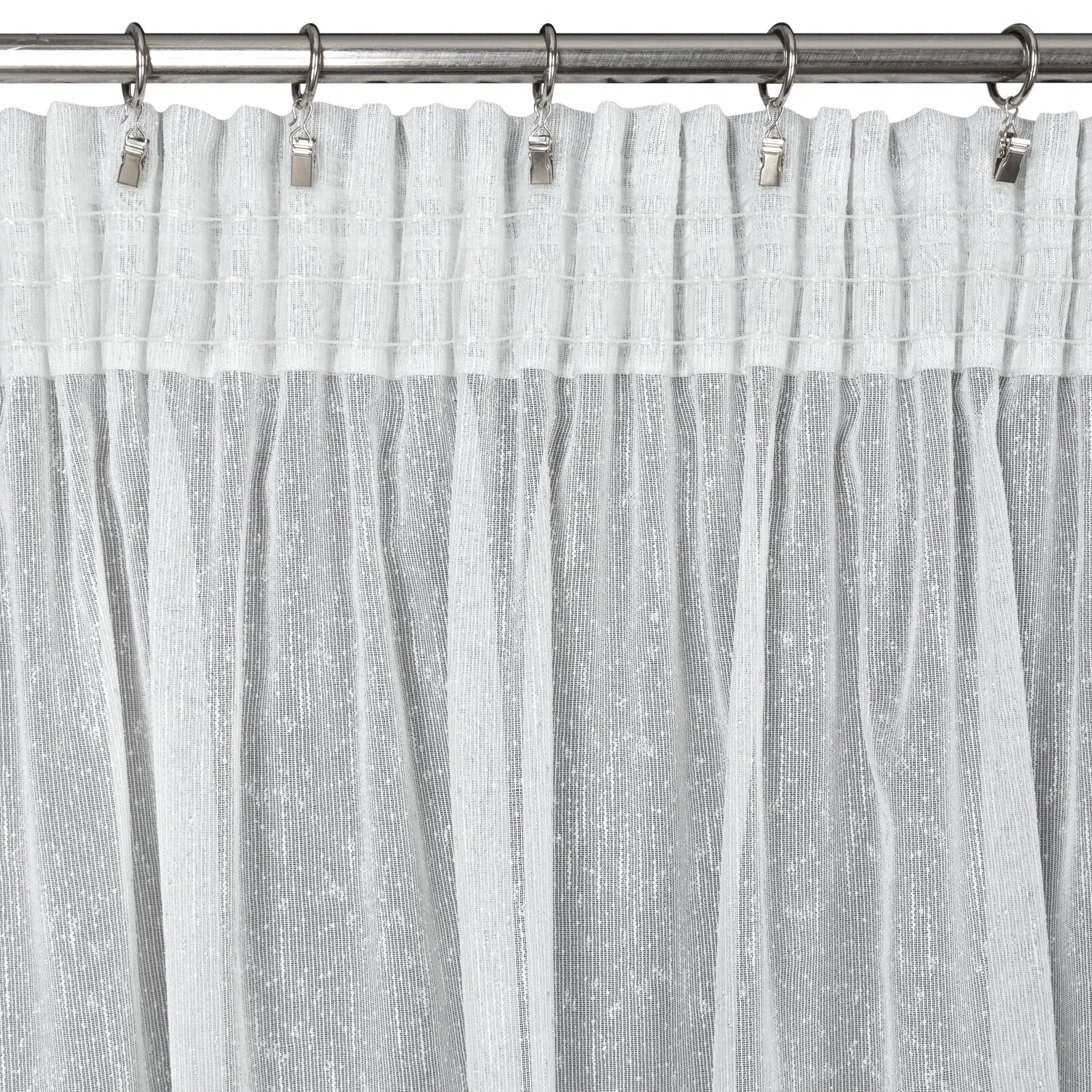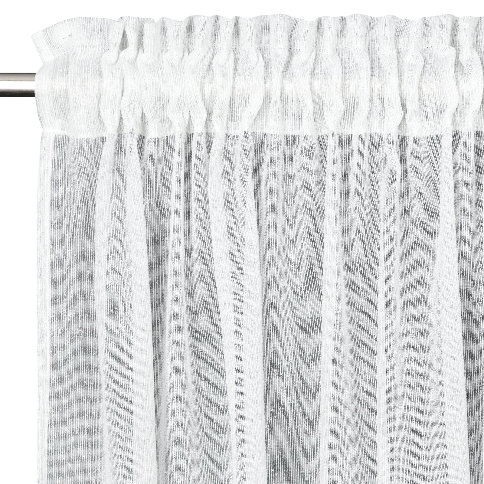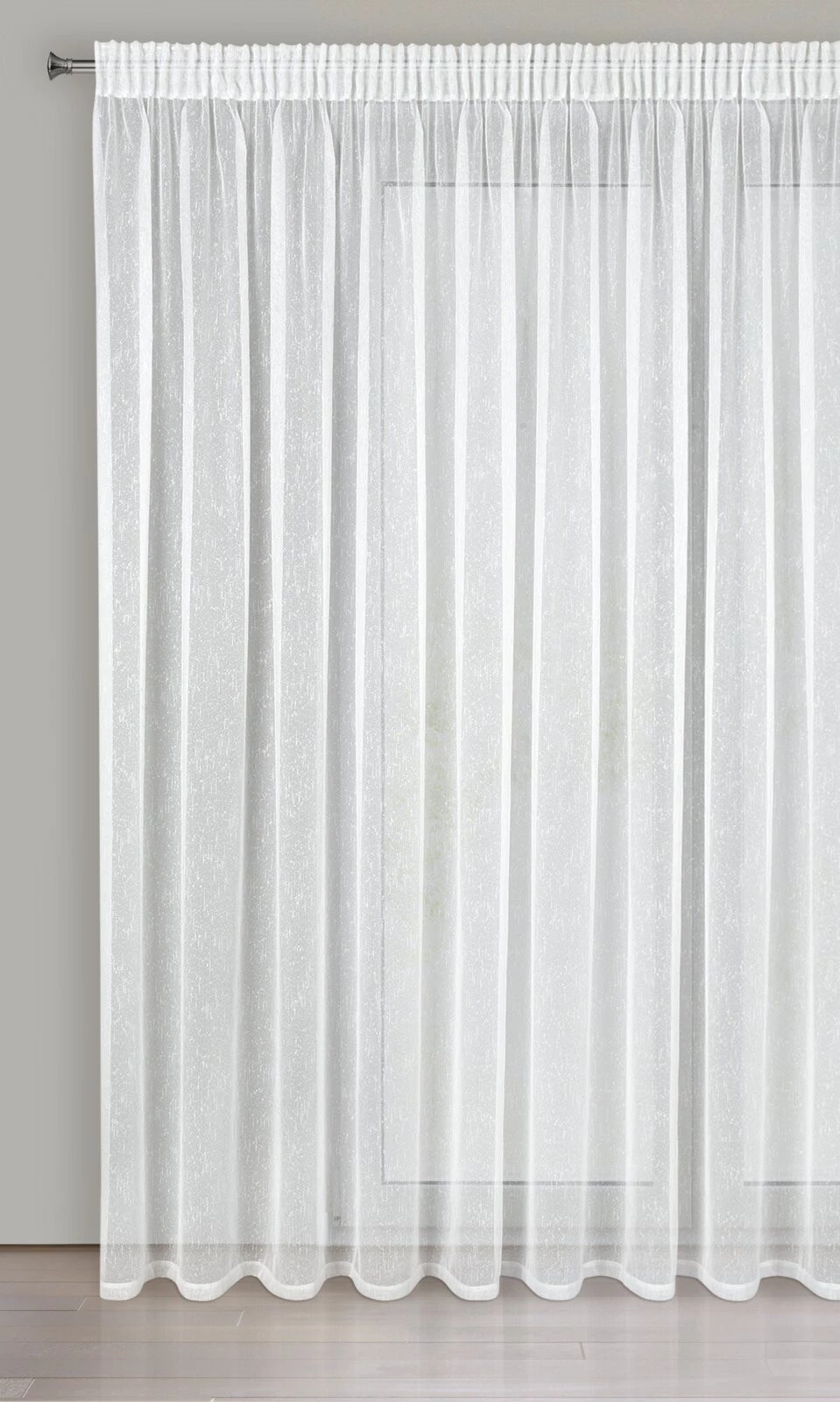 Firana gotowa o strukturze deszczyku zdobiona srebrną nicią szerokość: 300 cm, długość: 250 cm, kolor: biały, Gramatura: 80 GSM, Skład: 100% poliester