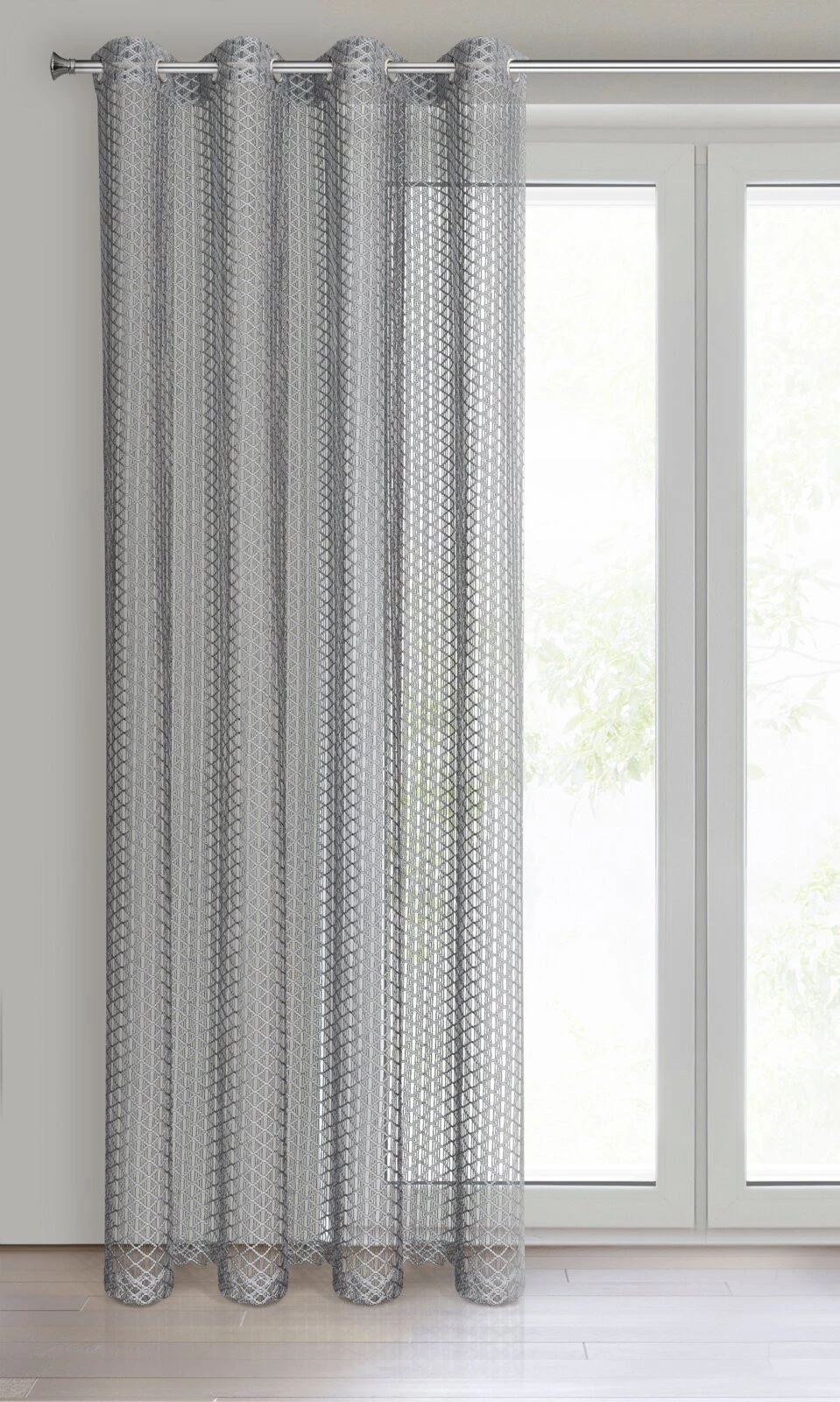 Nowoczesna firana z nieregularnej siateczki o subtelnym połysku i róznej wielkości oczek. Doskonała również w roli dekoracyjnej zasłony. Nie należy wybielać. szerokość: 140 cm, długość: 250 cm, kolor: srebrny, Gramatura: 75 GSM, Skład: 100% poliester
