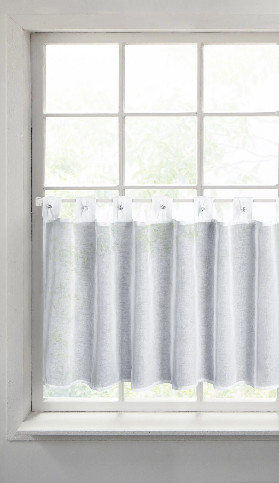 - Zazdrostka gotowa na szelkach z kryształkami szerokość: 150 cm, długość: 60 cm, kolor: biały, Gramatura: 50 GSM, Skład: 100% poliester
