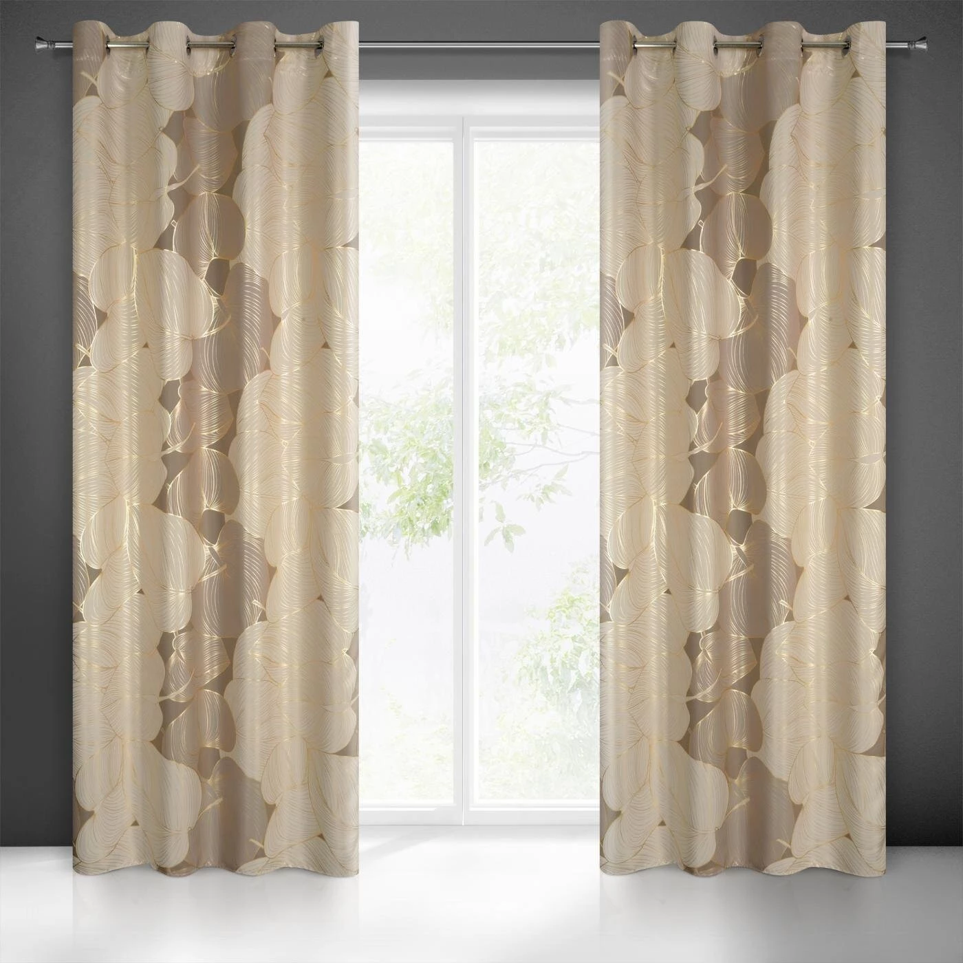 - Zasłona zaciemniająca ze złotym nadrukiem oraz motywem roślinnym szerokość: 140 cm, długość: 250 cm, kolor: beżowy, Gramatura: 200 GSM, Skład: 100% poliester