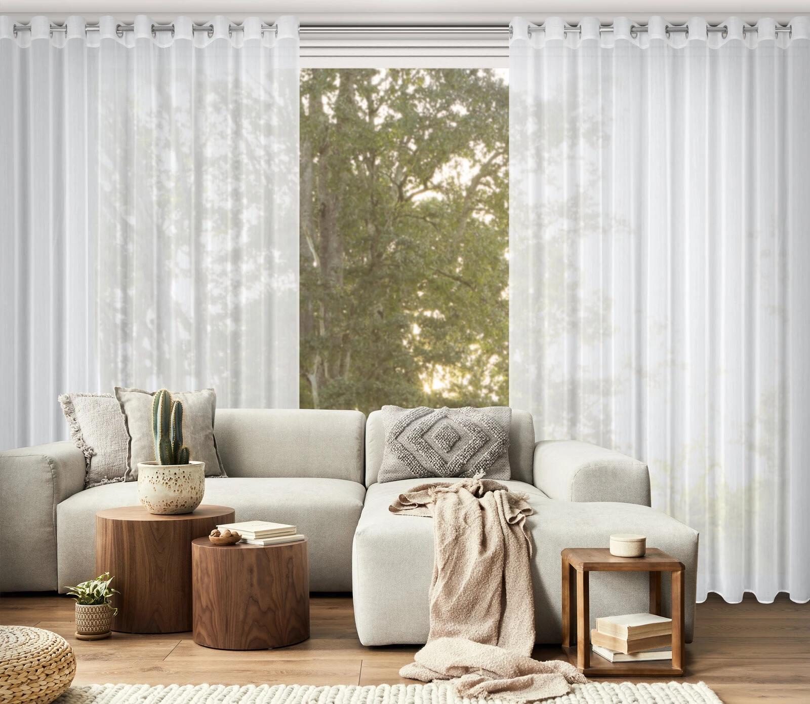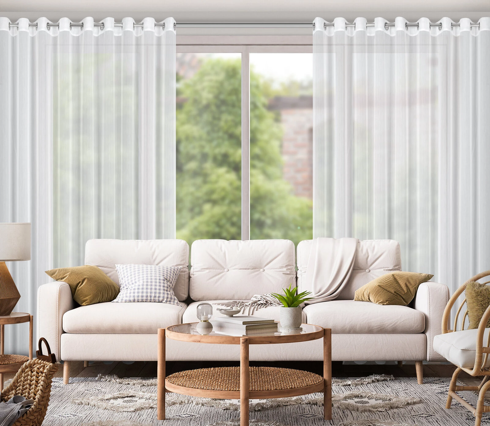 - Gładka firana gotowa szerokość: 300 cm, długość: 260 cm, kolor: biały, Gramatura: 80 GSM, Skład: 100% poliester