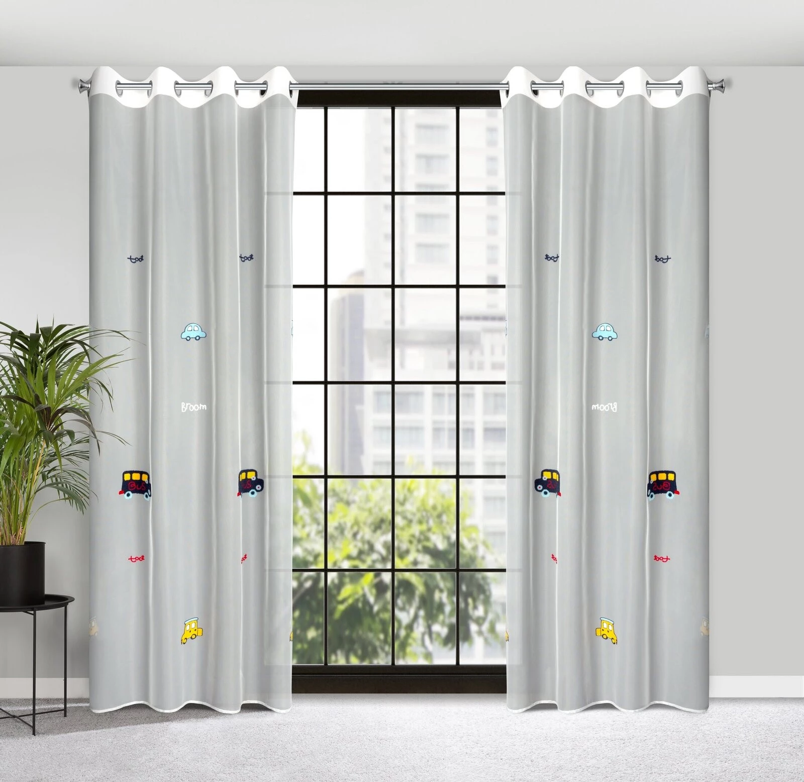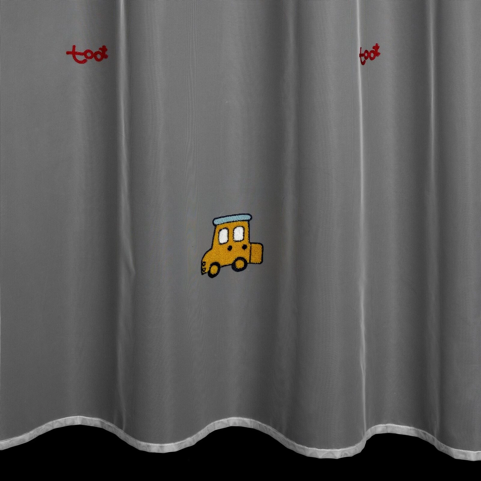 - Firana gotowa zdobiona haftem w dziecięcy wzór szerokość: 140 cm, długość: 250 cm, kolor: biały, Gramatura: 35 GSM, Skład: 100% poliester