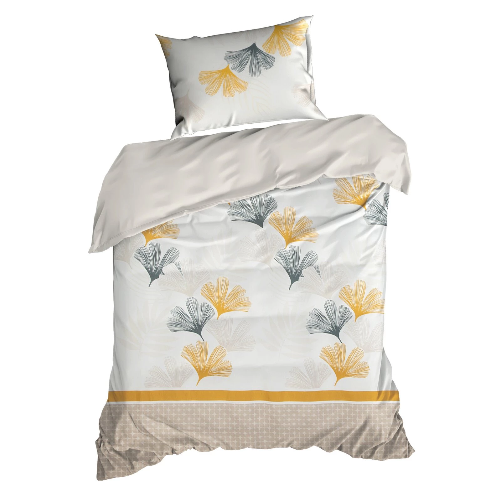 Komplet pościeli satynowej z nadrukiem szerokość: 220 cm, długość: 200 cm, kolor: biały, Gramatura: 125 GSM, Skład: 55% bawełna, 45% poliester