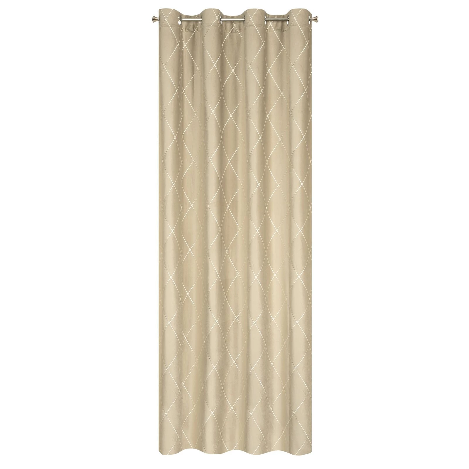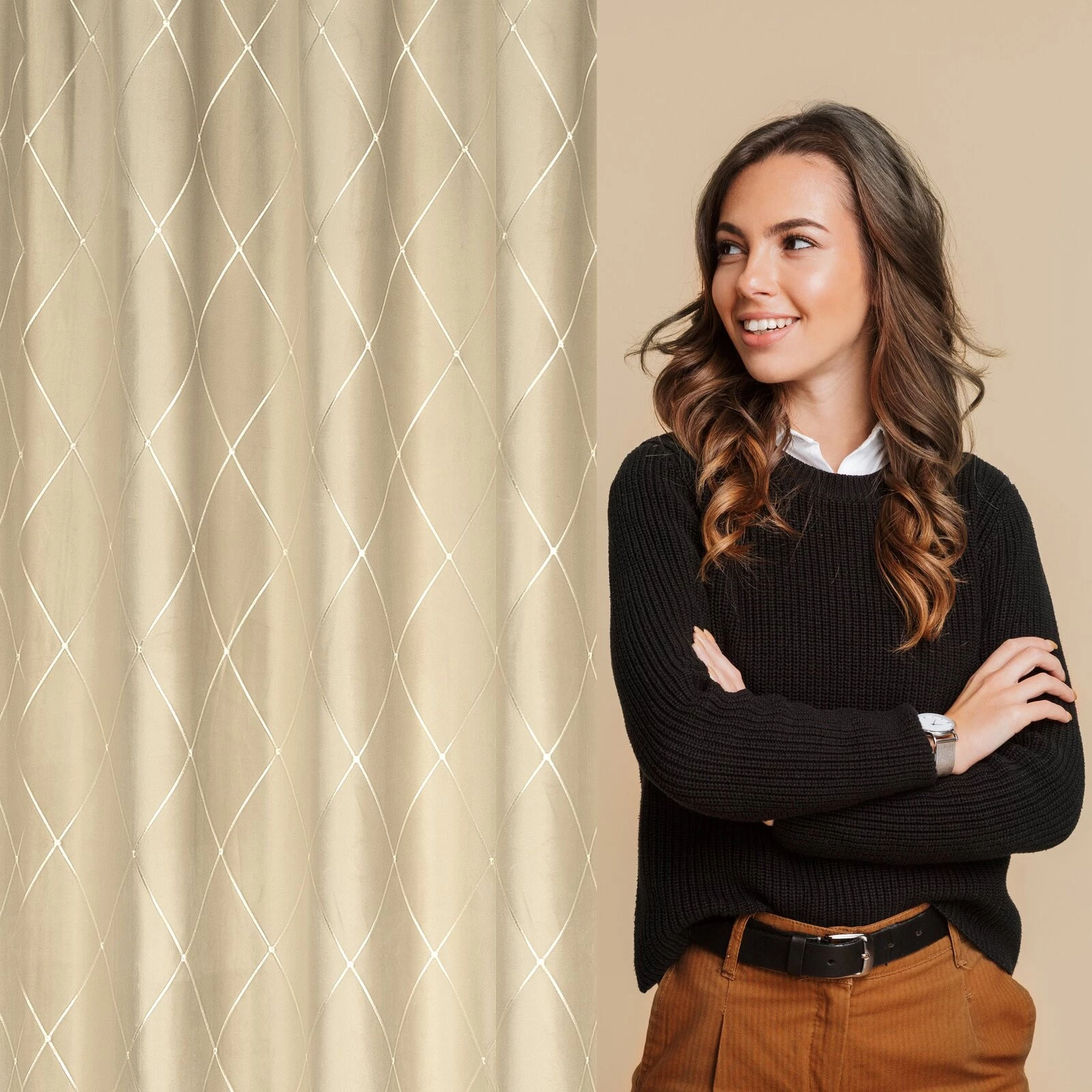- Zasłona welwetowa zdobiona haftem szerokość: 140 cm, długość: 250 cm, kolor: beżowy, Gramatura: 258 GSM, Skład: 100% poliester