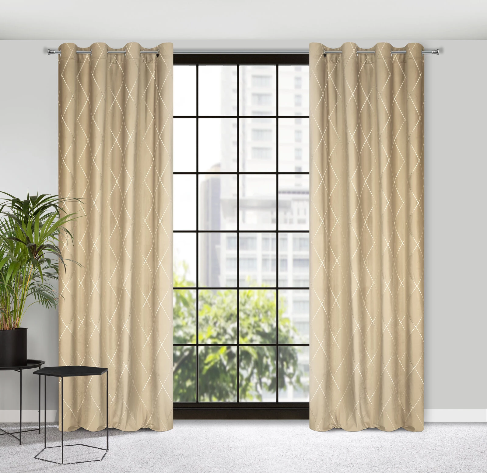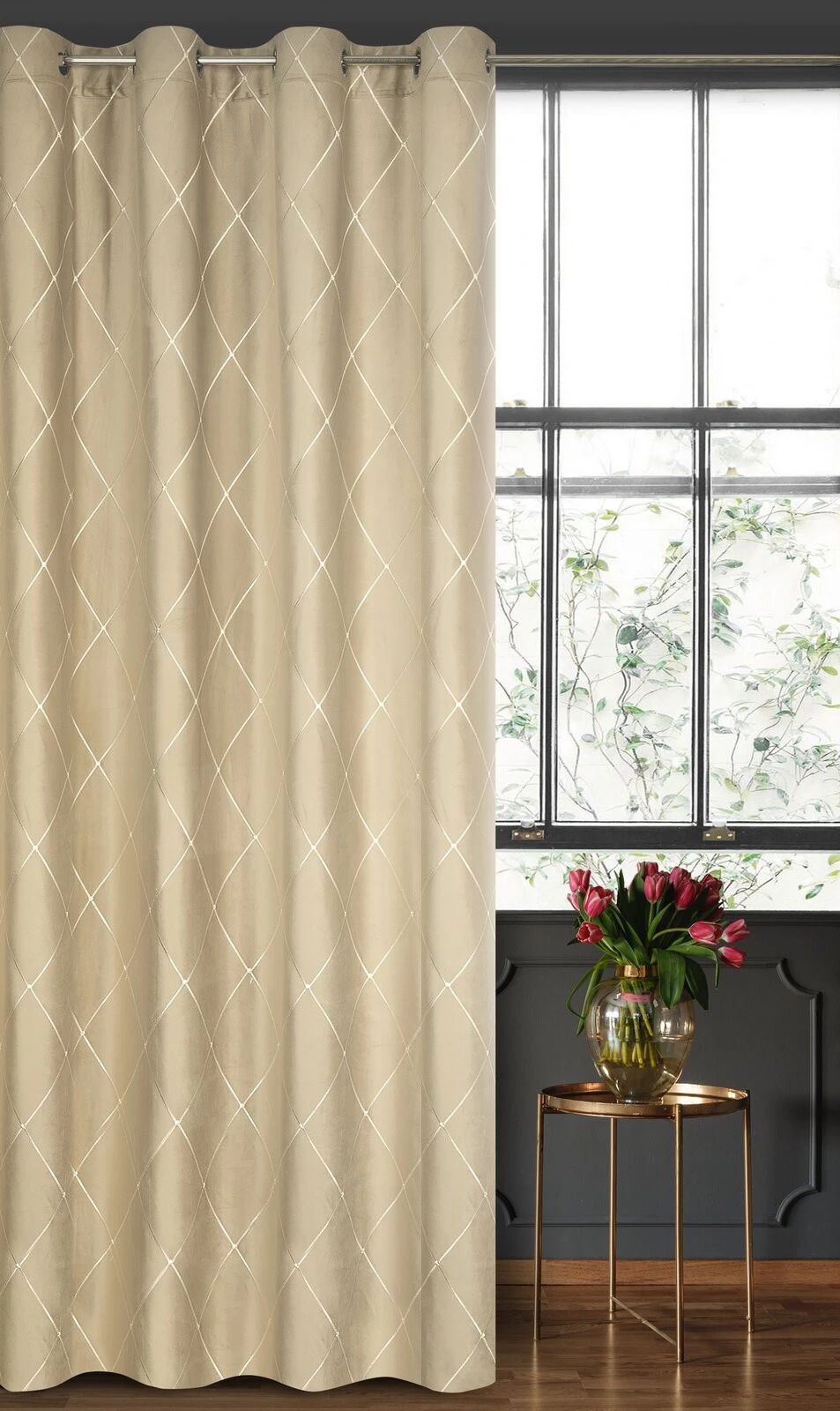 Zasłona welwetowa zdobiona haftem szerokość: 140 cm, długość: 250 cm, kolor: beżowy, Gramatura: 258 GSM, Skład: 100% poliester
