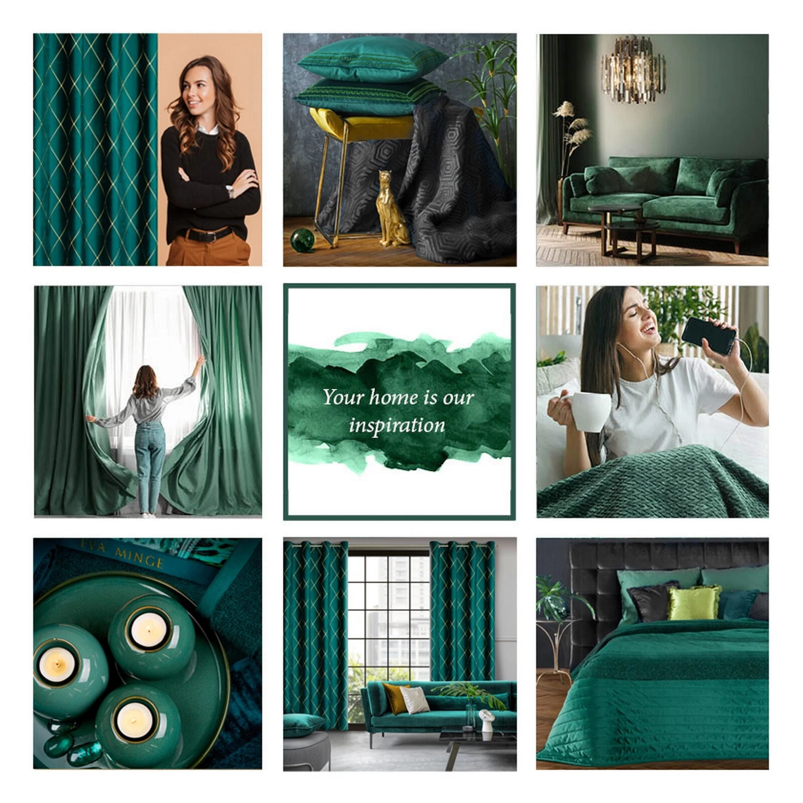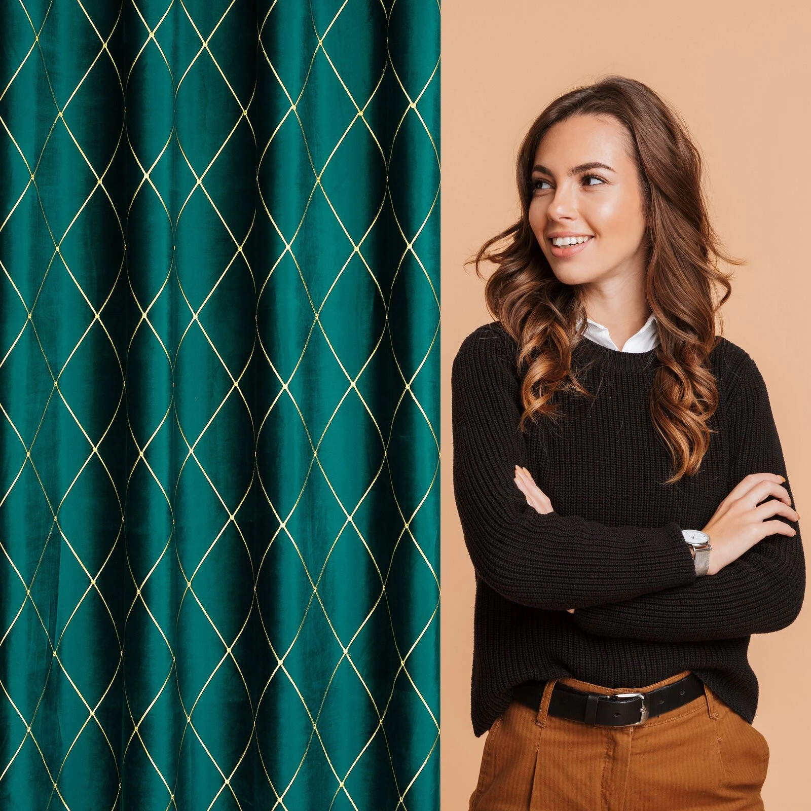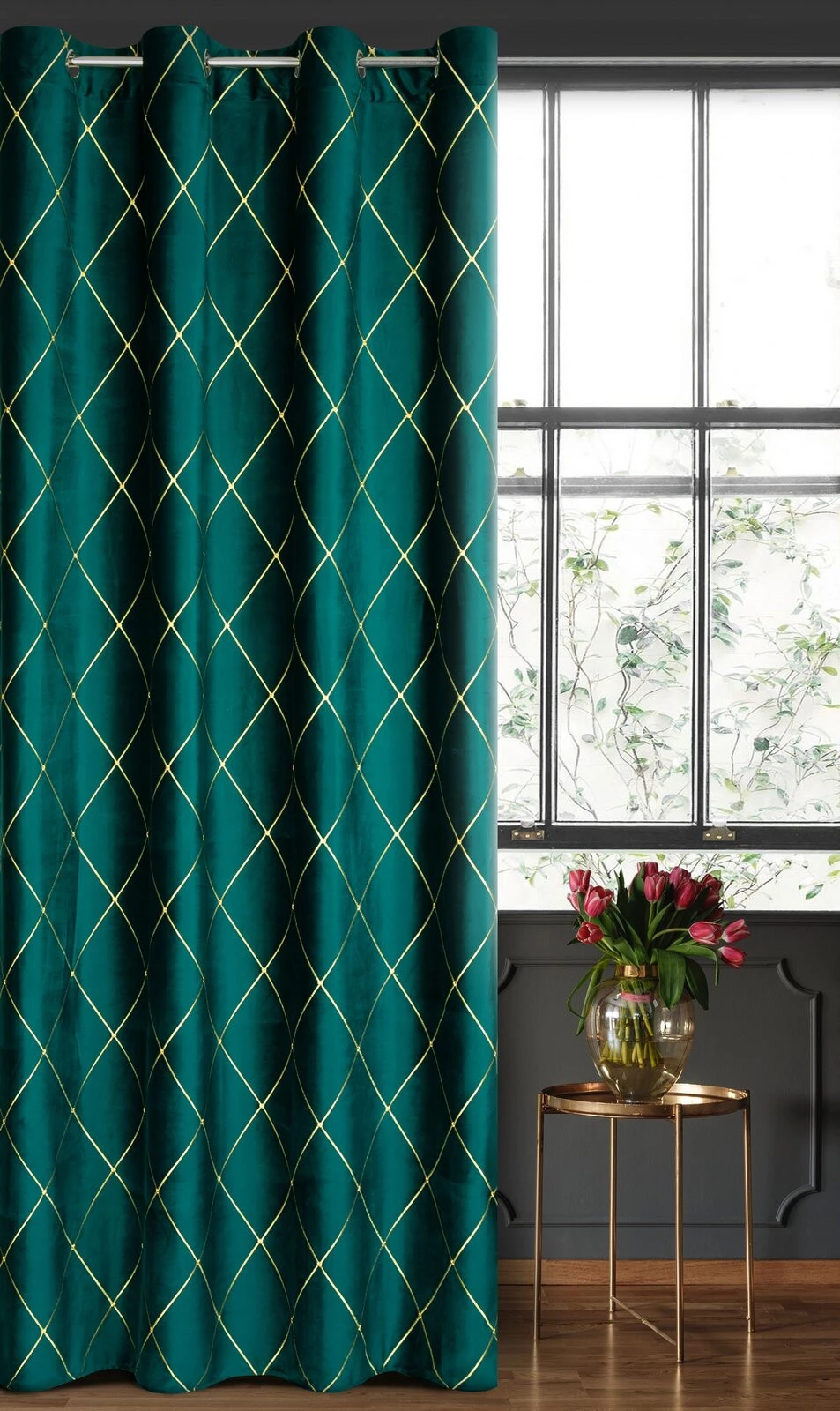 - Zasłona welwetowa zdobiona haftem szerokość: 140 cm, długość: 250 cm, kolor: turkusowy, Gramatura: 258 GSM, Skład: 100% poliester