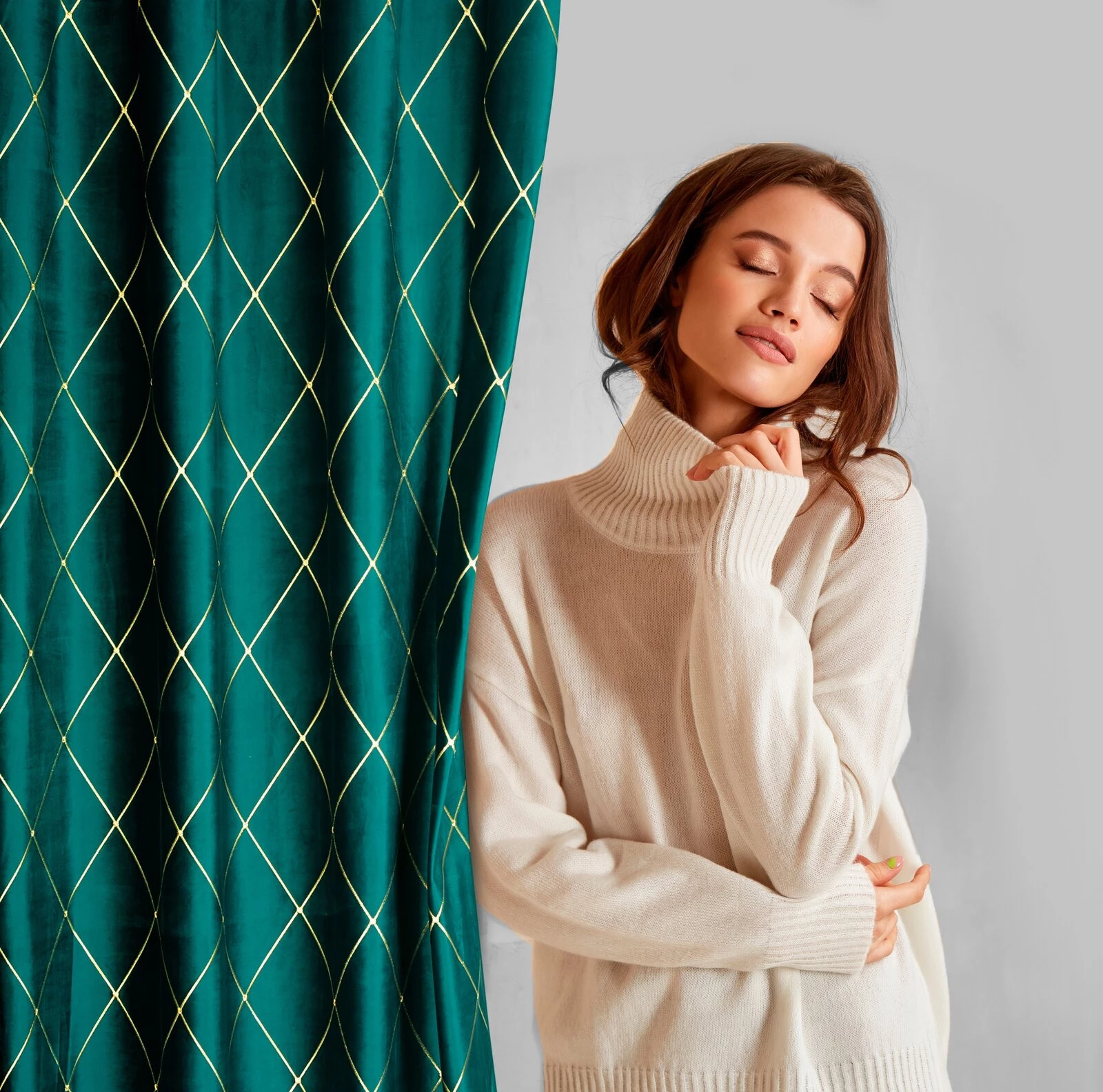 Zasłona welwetowa zdobiona haftem szerokość: 140 cm, długość: 250 cm, kolor: turkusowy, Gramatura: 258 GSM, Skład: 100% poliester