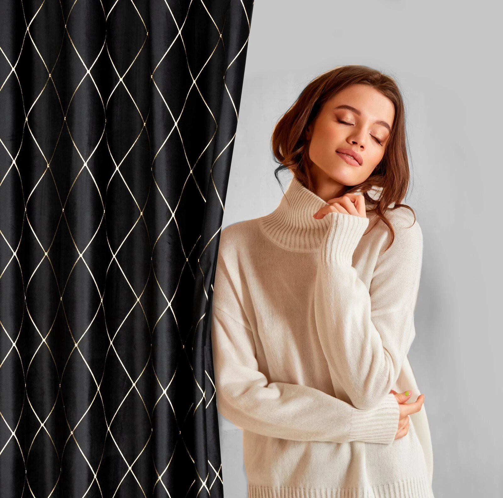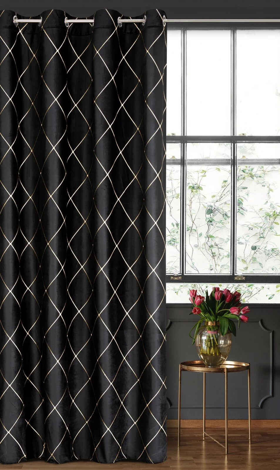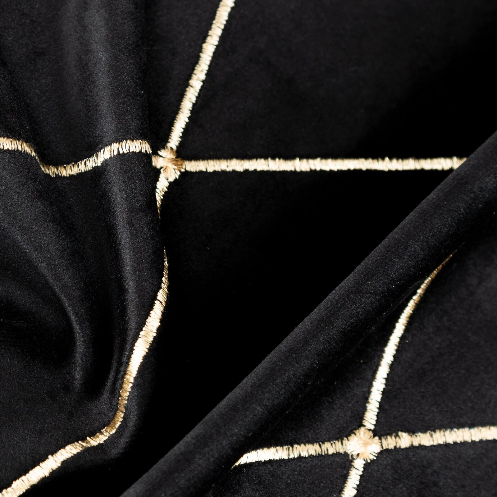 Zasłona welwetowa zdobiona haftem szerokość: 140 cm, długość: 250 cm, kolor: czarny, Gramatura: 258 GSM, Skład: 100% poliester