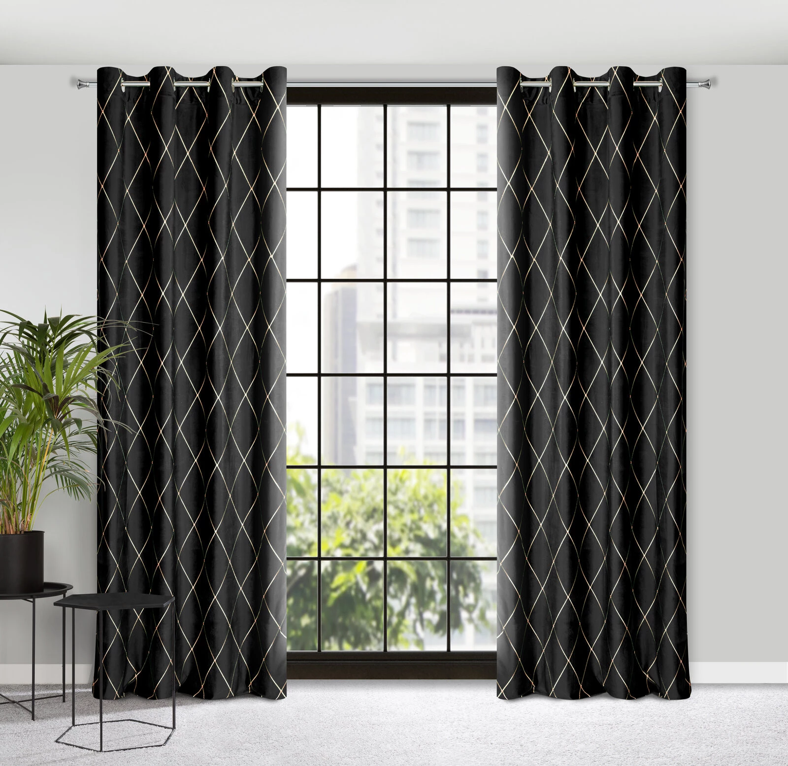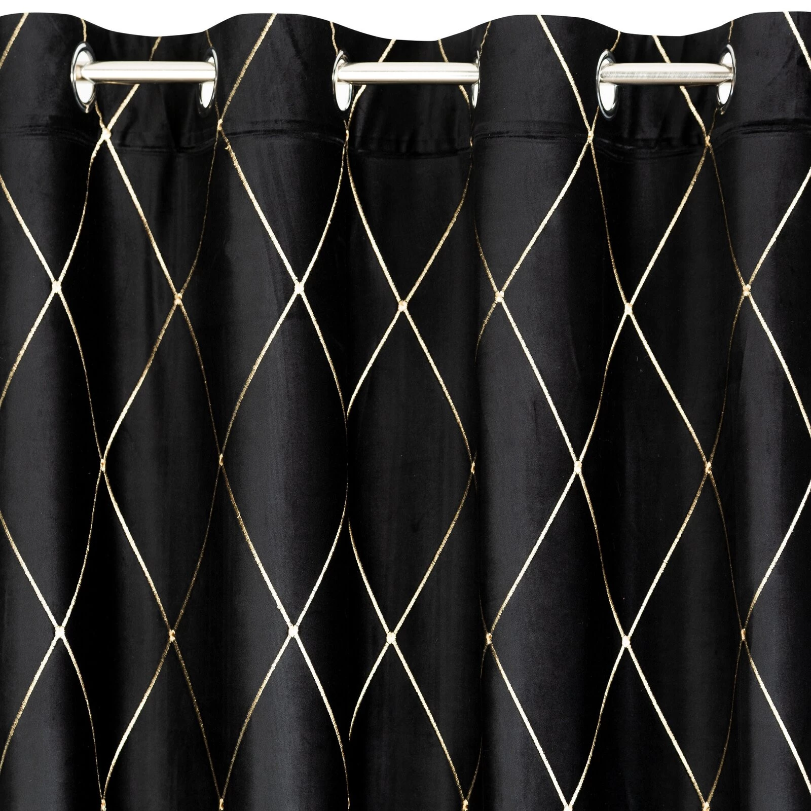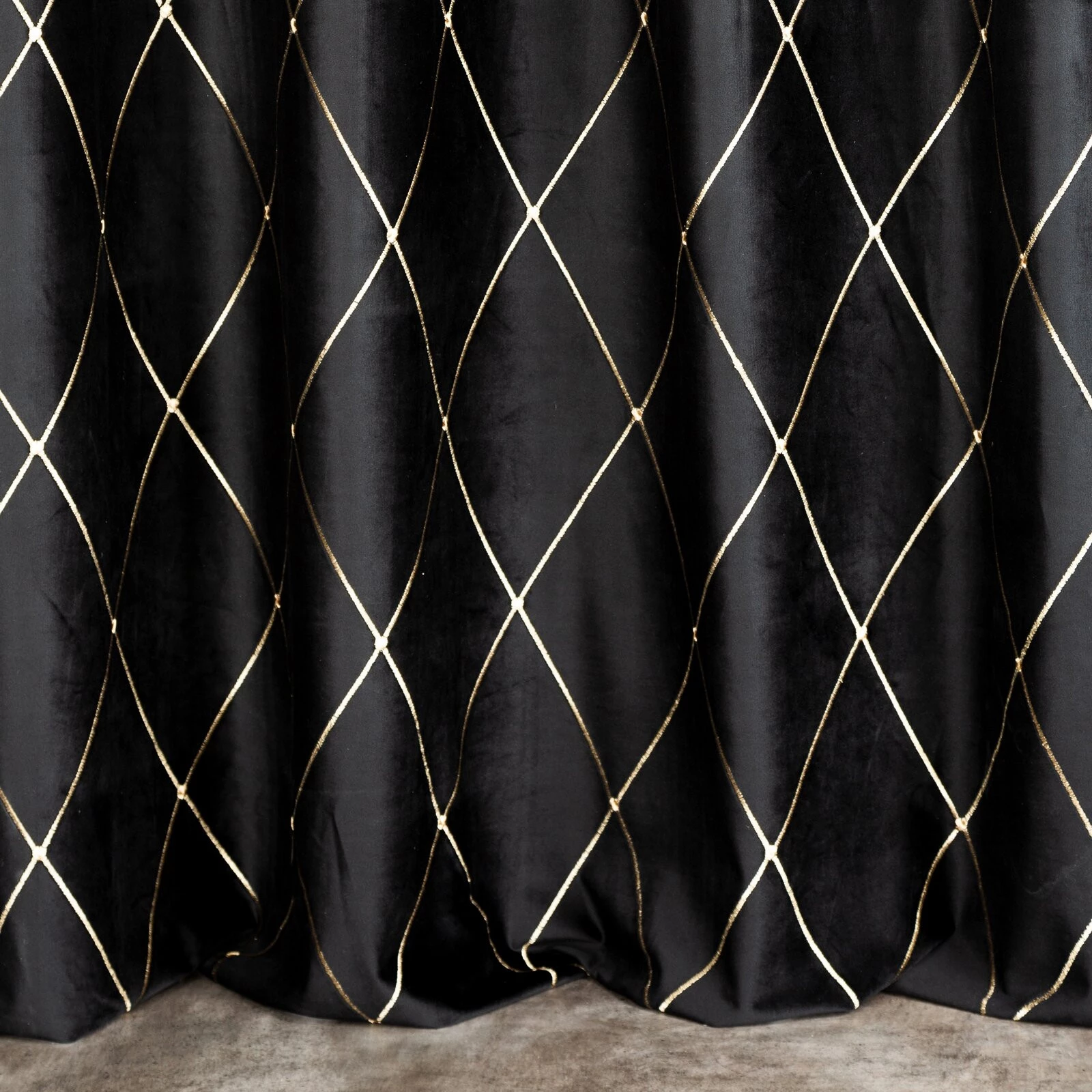 - Zasłona welwetowa zdobiona haftem szerokość: 140 cm, długość: 250 cm, kolor: czarny, Gramatura: 258 GSM, Skład: 100% poliester
