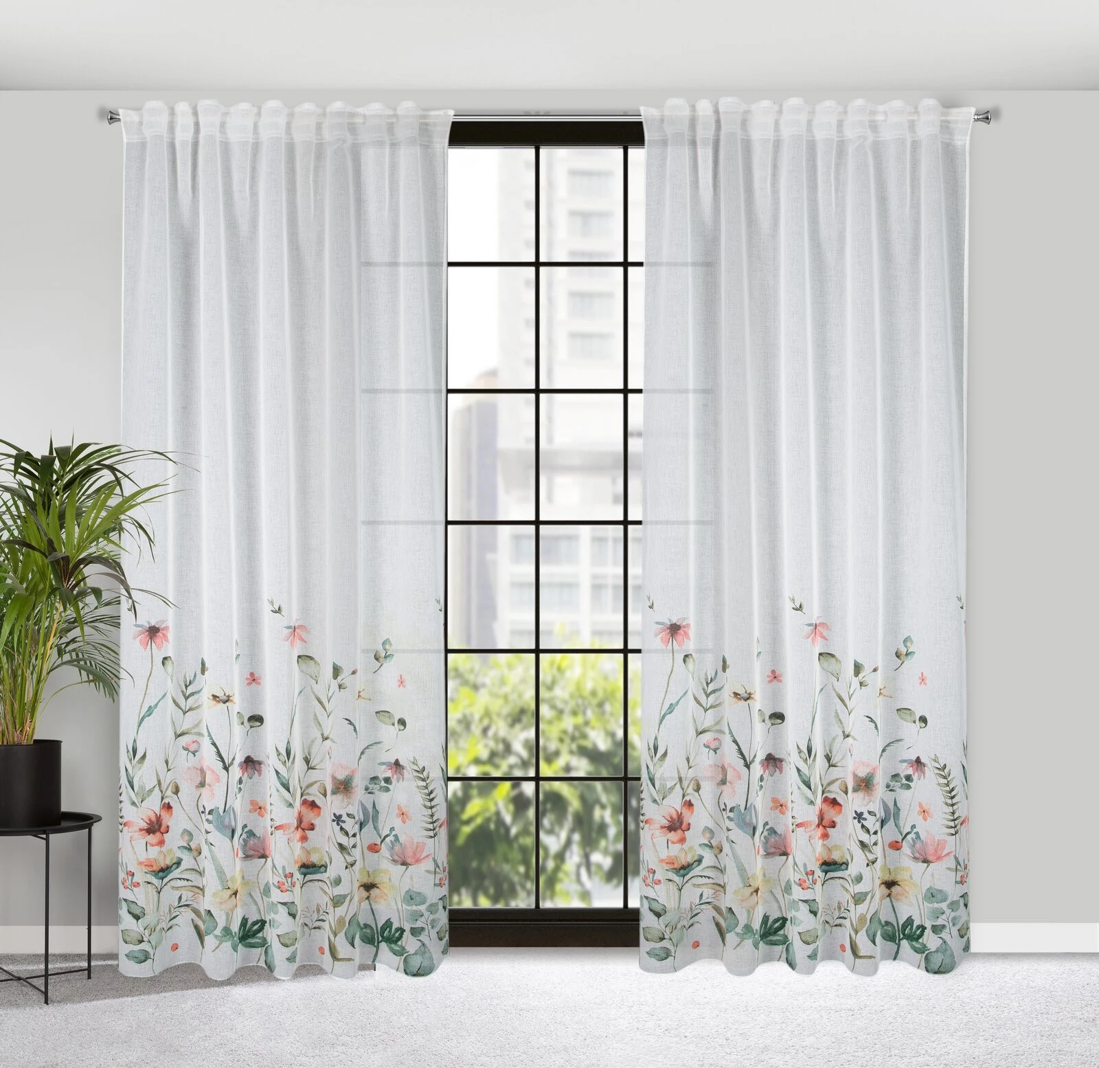 Zasłona z nadrukowanym motywem kwiatowym szerokość: 140 cm, długość: 270 cm, kolor: biały, Gramatura: 70 GSM, Skład: 100% poliester